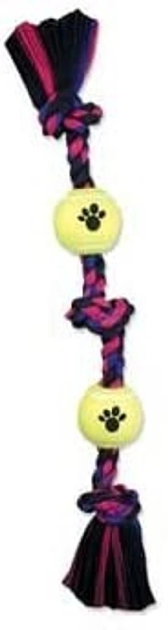 The Mammoth Pet Flossy Chews Color 3 Knot Tug with Tennis Ball is made with from premium cotton blend fibers that are tightly woven for long-lasting performance. Flossy Chews are interactive toys that satisfy playing requirements while helping dogs maintain good dental hygiene. Made for dogs up to 15lbs.