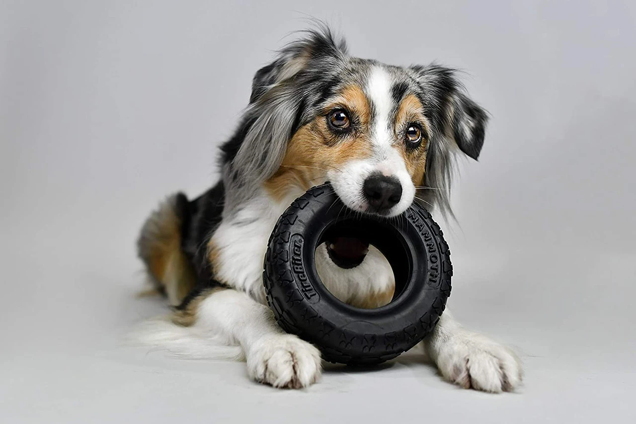 - REAL-TIRE TOUGH: These strong dog toys are ideal dog toys for extreme chewers. Dog toys in the TireBiterII range are made in North America from an advanced natural rubber formula for extra long lasting play.