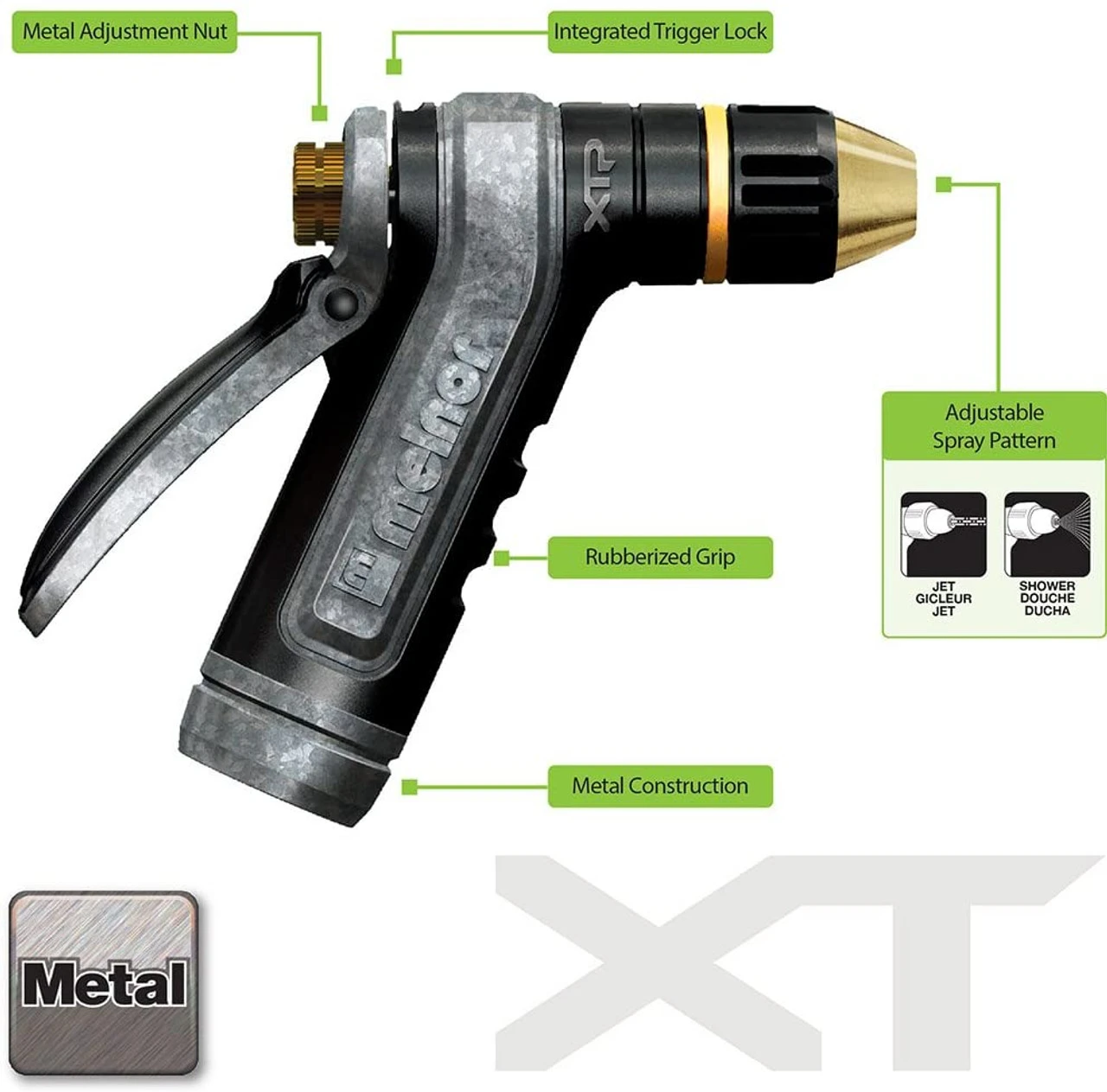 - The built in trigger lock helps keep even long lasting watering chores easy on the hand arm