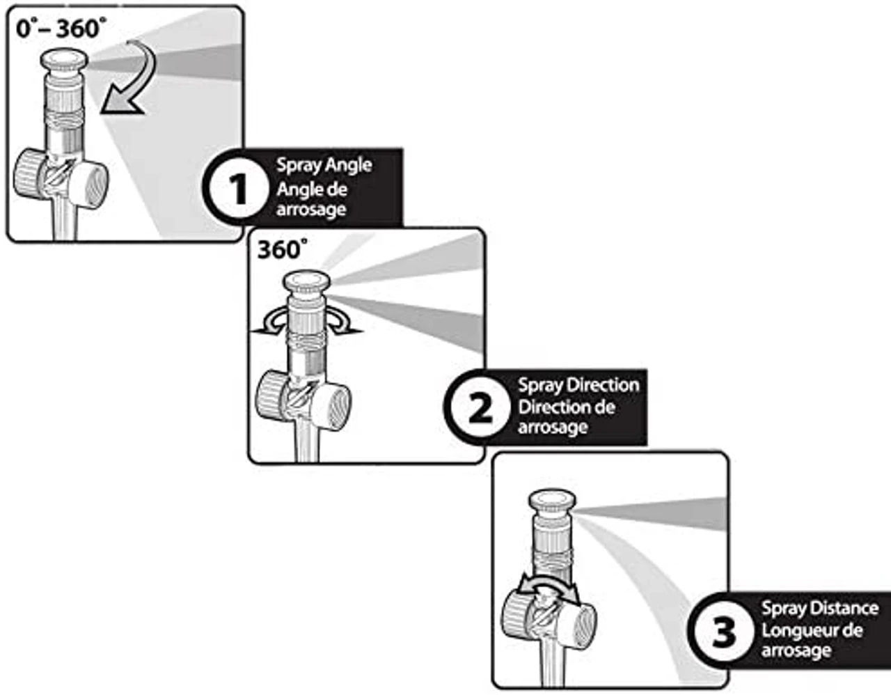 - Angle adjustable spray control allows for Customizing watering where you need. The angle can be set to 5 degrees for more narrow watering or 360 degrees for watering a circle