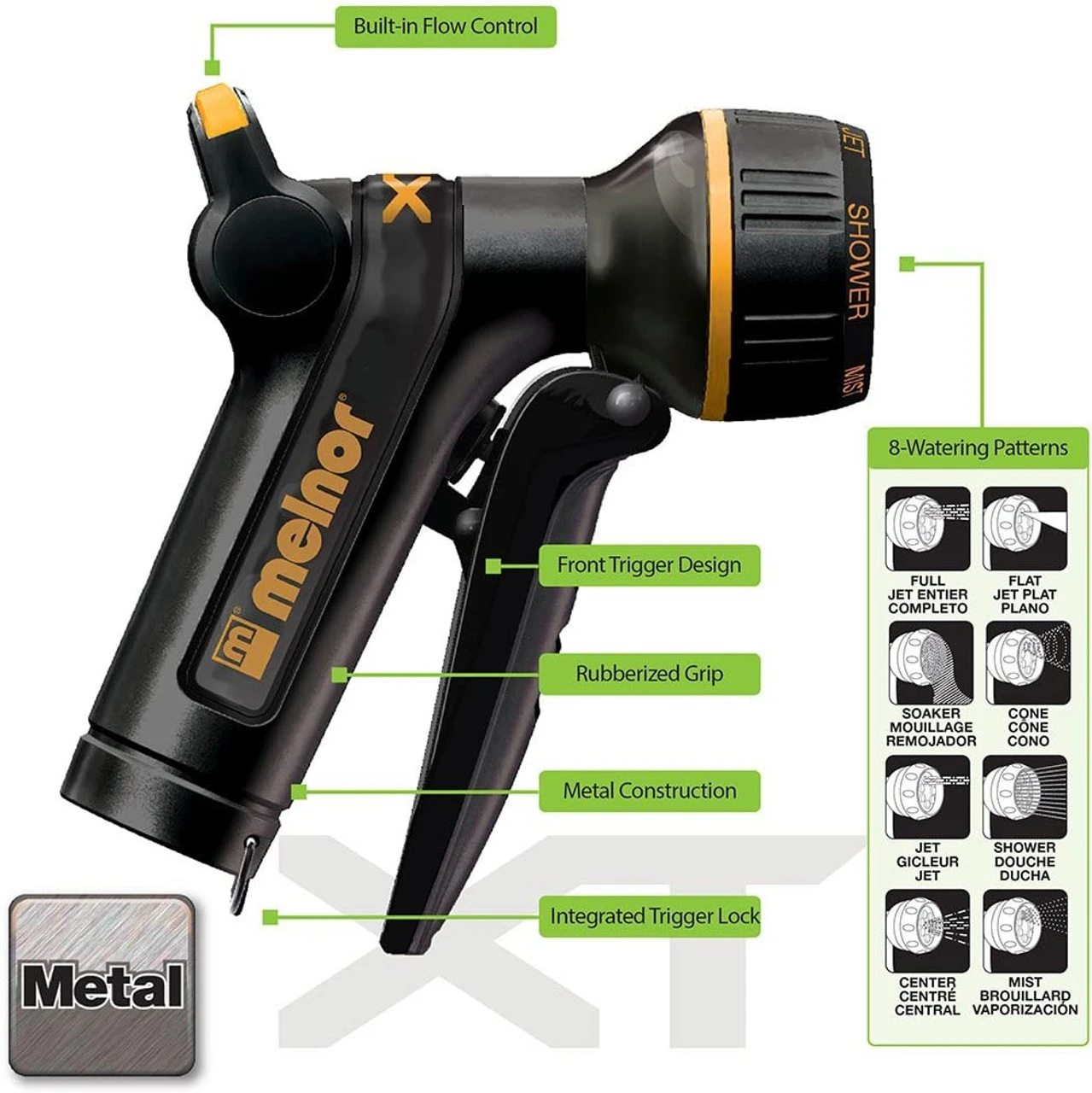 Melnor XT Metal Garden Hose Nozzle; Front Trigger with Flow Control; 8 Watering Patterns; 100% Metal Body with Fully Rubberized Slip Resistant Grip