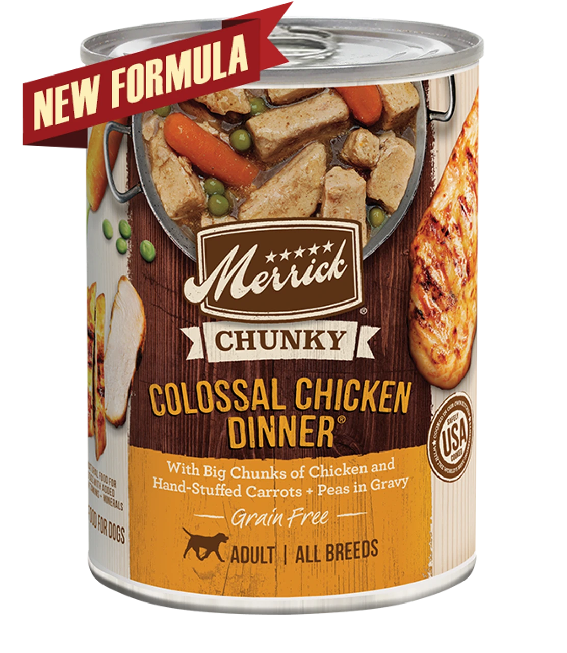 Merrick® Chunky Grain Free Colossal Chicken Dinner® in Gravy Dog Food is formulated to meet the nutritional levels established by the AAFCO Dog Food Nutrient Profiles for maintenance.