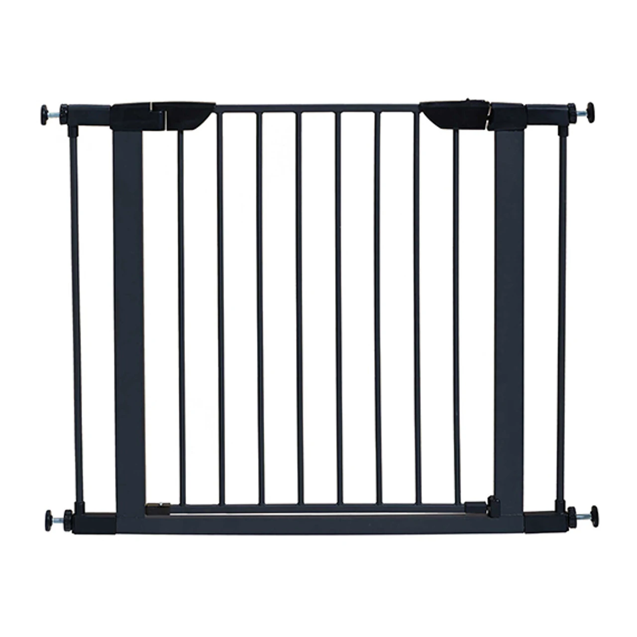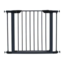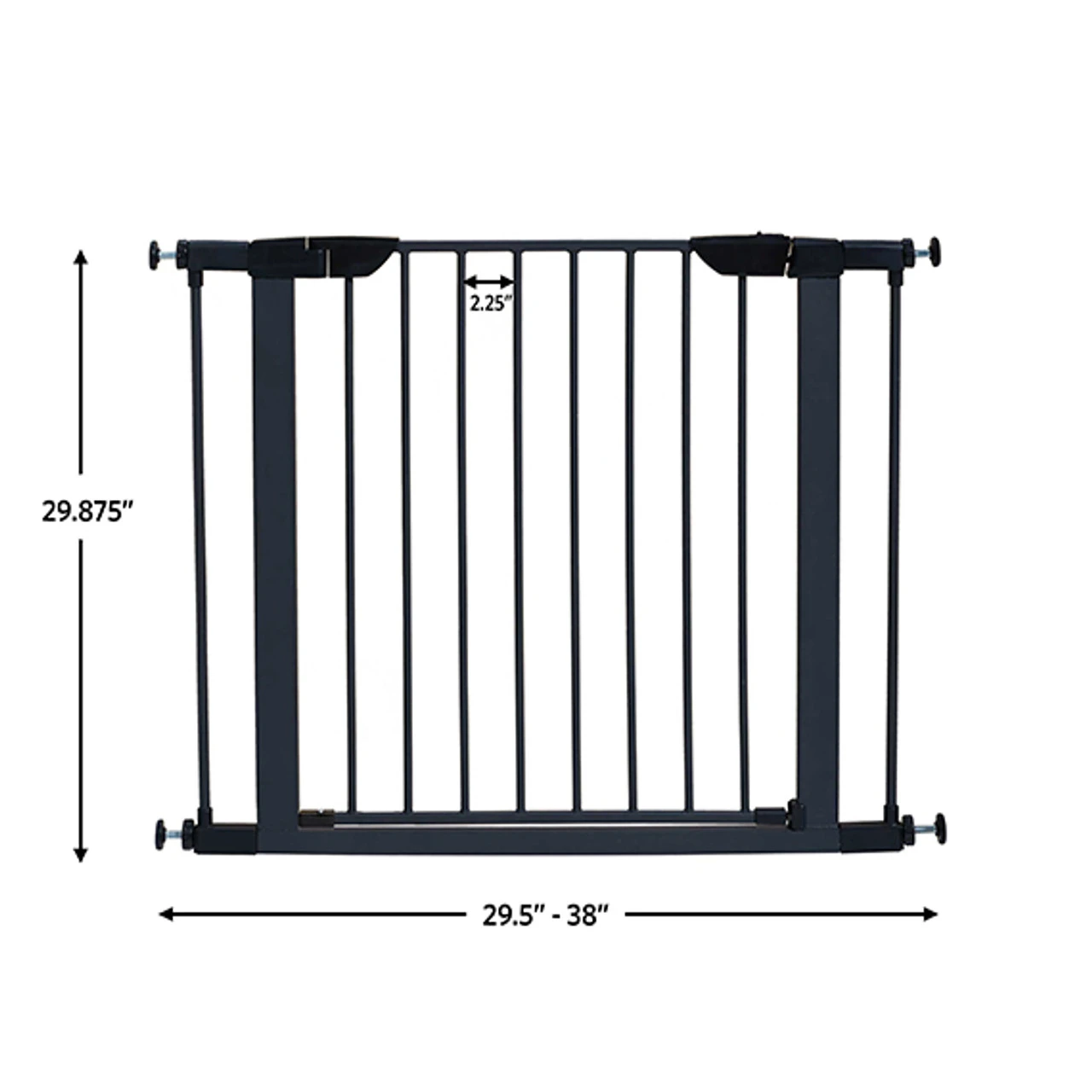 Steel Pet Gates by MidWest Homes for Pets offer a sturdy, attractive, and convenient way to keep your pet in a good place. This portable gate can be expanded to fit wide spaces from 29.5 to 38 inches. Additional extensions can be purchased separately to fit an entryway with a maximum width of 54 inches. The one-handed, safe and secure spring-loaded latch allows you to easily operate the 19” wide door, which swings in both directions for ultimate convenience. Assembly is simple. Tools are not required unless using the optional mounting cups, for which a Phillips screwdriver is needed.