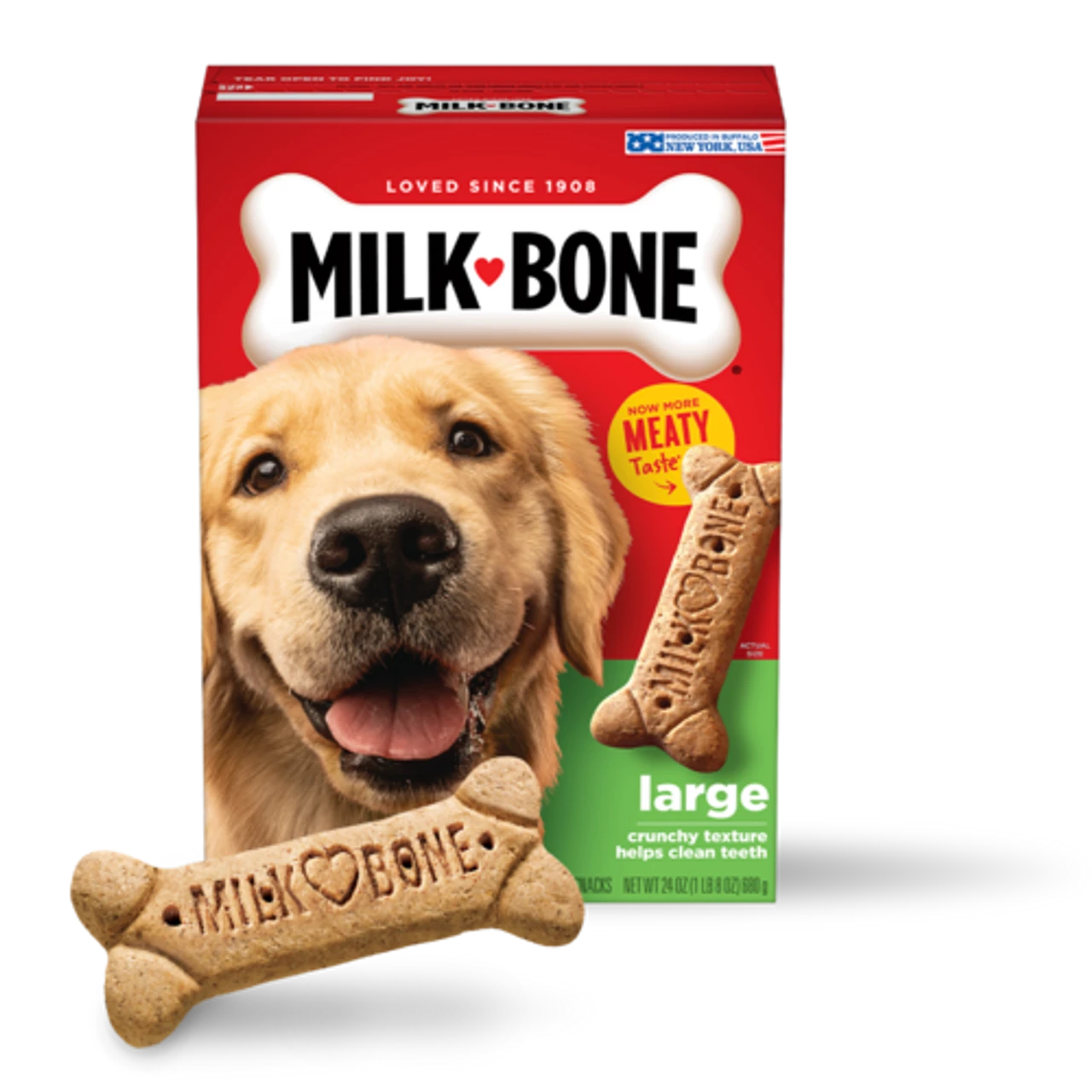 For the big dogs who bring us such big joy, these large dog biscuits are a snack worthy of their size — and now, they pack even MORE meaty flavor compared to the Milk-Bone® Original biscuits you know and love.