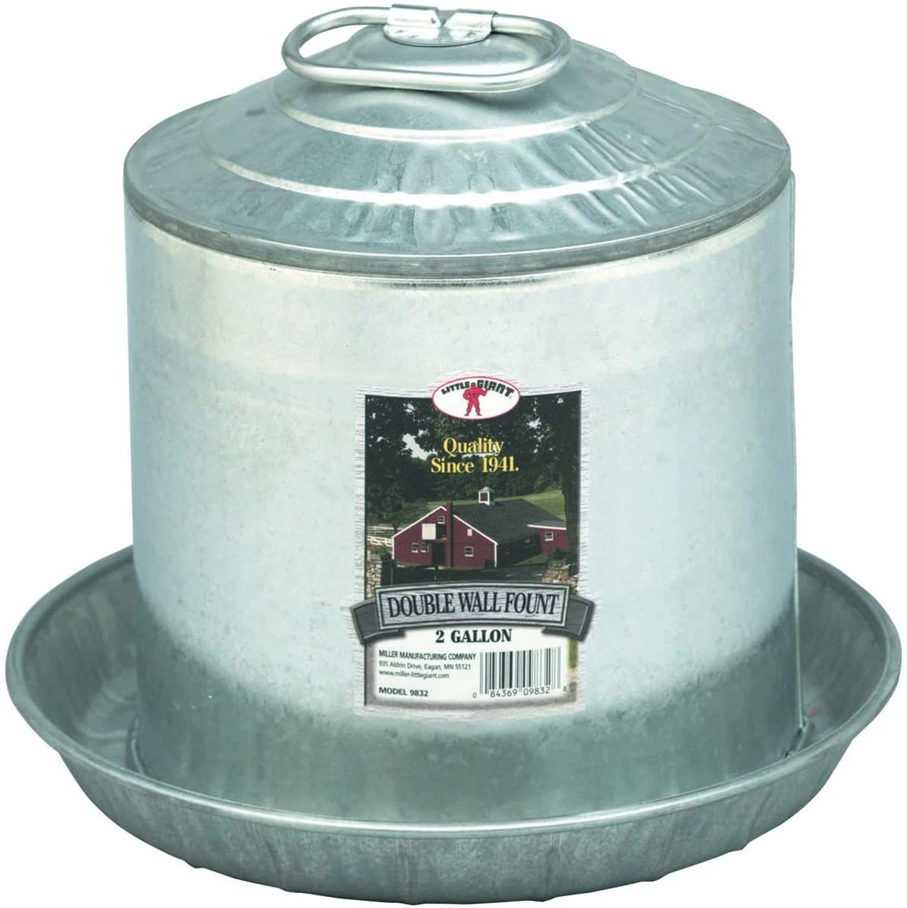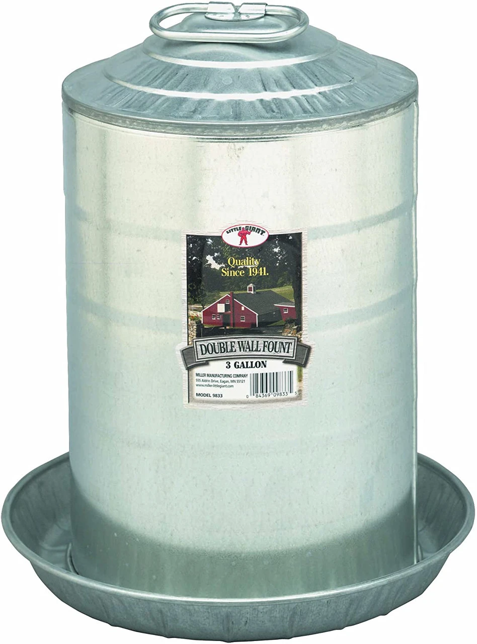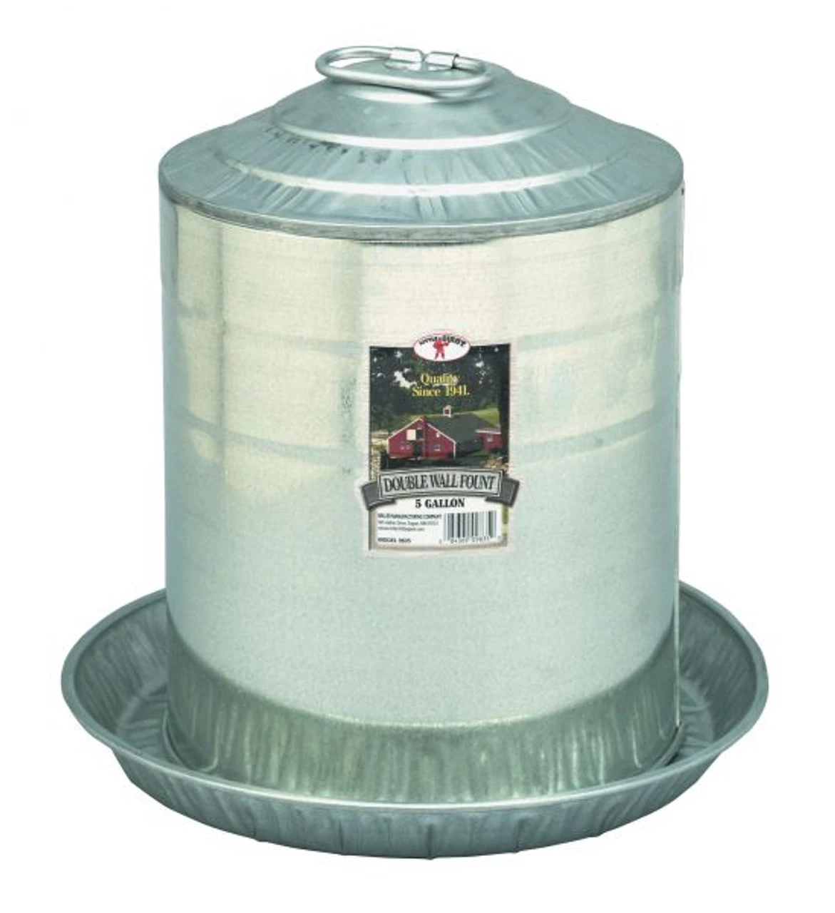 Constructed of heavy-gauge galvanized steel with rolled edges for safety. Seams are constructed and tested to prevent leaks. A key advantage of metal founts is the ability to use the fount in winter with a heater base such as the Little Giant Electric Water Heater Base (Item No. HB125, sold separately).