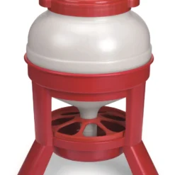 Large-capacity feeder for your flock. Made of strong, heavy-duty plastic. Easy to fill, thanks to the top-fill design and lid. Fill from the top and screw the lid on tightly to protect feed from the elements. Three legs are easily assembled to the base and keep the feeder off the ground. Feed Saver Ring minimizes spillage to prevents wasted food and is easily removed for cleaning. For chickens, ducks or other poultry.