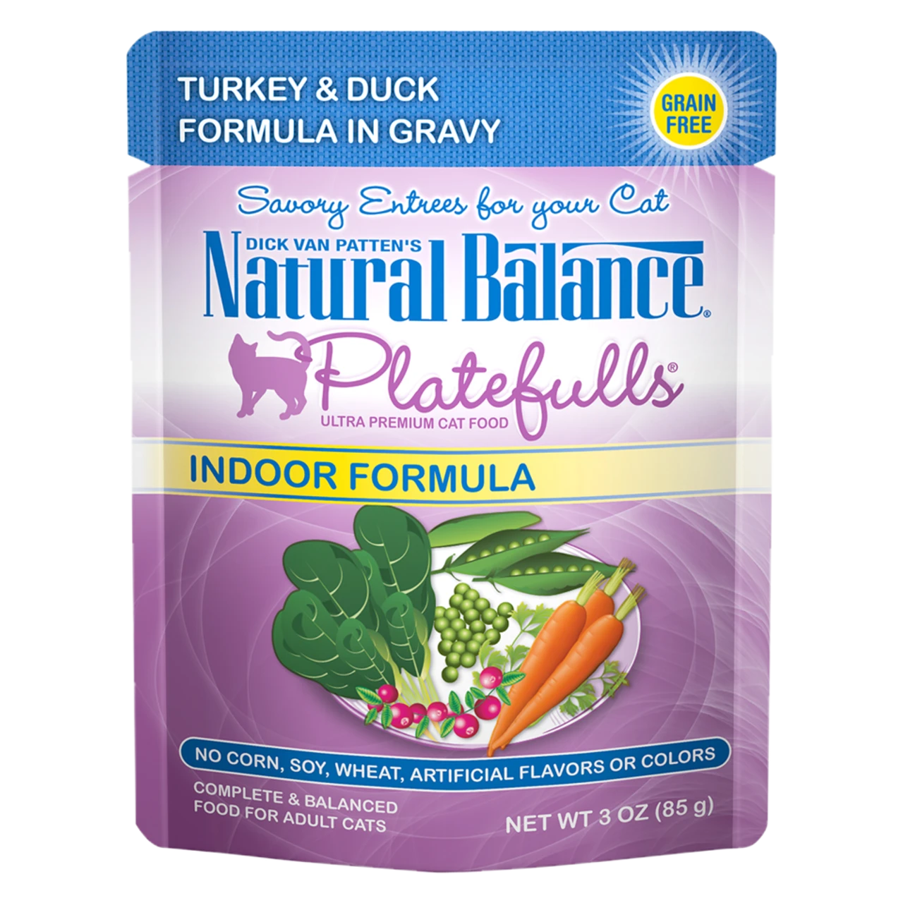 Dick Van Patten’s Natural Balance® Platefulls® Indoor Turkey & Duck Formula in Gravy Cat Food is formulated to meet the nutritional levels established by the AAFCO Cat Food Nutrient Profiles for Adult Maintenance.