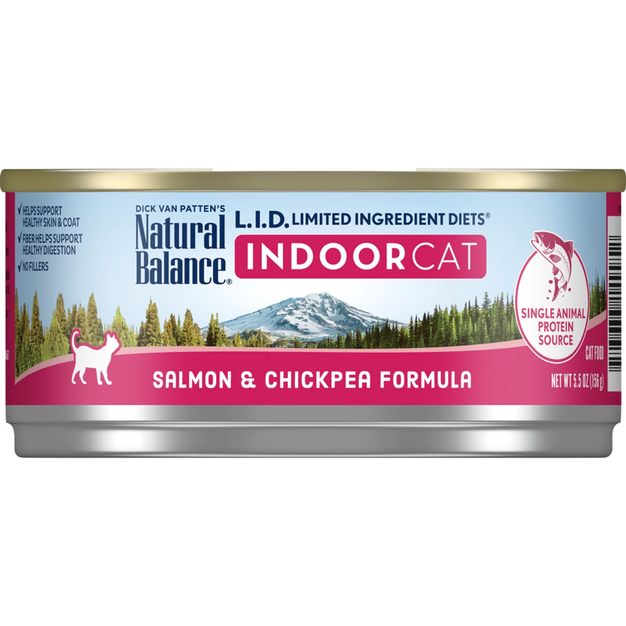 Dick Van Patten’s Natural Balance® L.I.D. Limited Ingredient Diets® Indoor Cat Salmon & Chickpea Formula Adult Cat Food is formulated to meet the nutritional levels established by the Association of American Feed Control Officials (AAFCO) Cat Food Nutrient Profiles for Adult Maintenance.