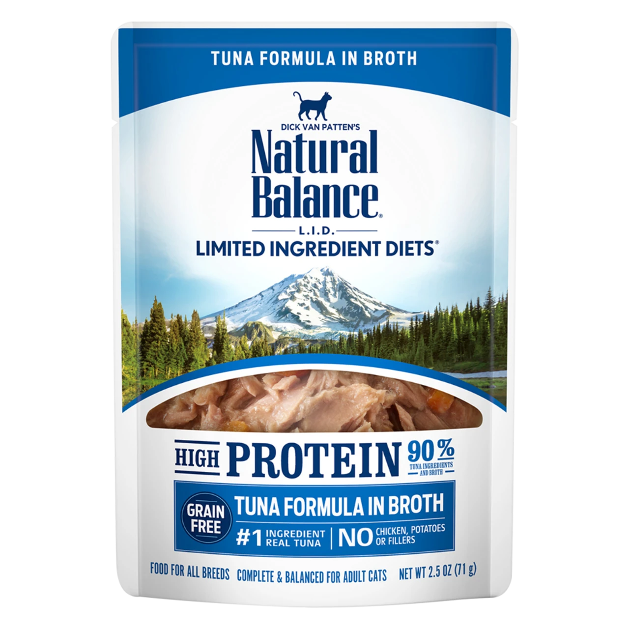 Dick Van Patten’s Natural Balance® L.I.D. Limited Ingredient Diets High Protein Tuna Formula in Broth Wet Cat Food is formulated to meet the nutritional levels established by the AAFCO Cat Food Nutrient Profiles for Adult Maintenance