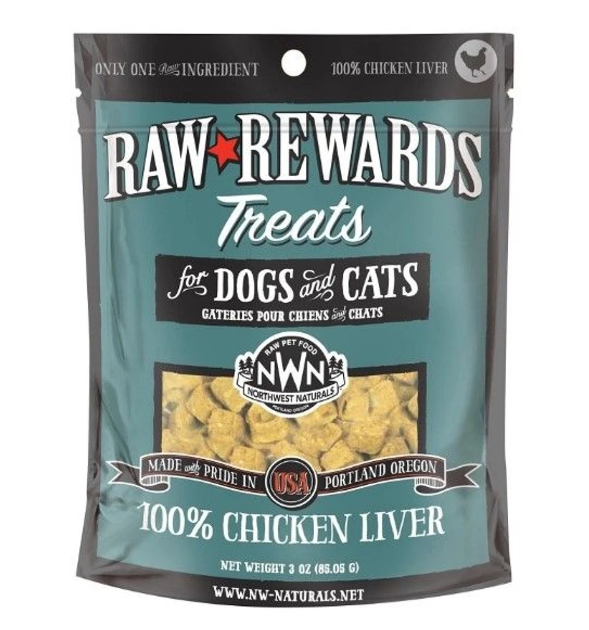 Northwest Naturals Raw Rewards Freeze-Dried Chicken Liver Dog & Cat Treats 3oz are a single ingredient treat that is highly palatable and easy to feed. Freeze drying locks in all of the taste, aroma, freshness and nutrients in the raw liver, making these treats a healthy and delicious snack. They are great for training, meal toppers, or for simple rewards for your dog or cat.