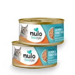 Our meaty minced and shredded morsels help to satisfy your cat’s desire to eat like she would in the wild. Switch between this salmon & turkey minced recipe and one of our shredded recipes to give her the variety she craves.