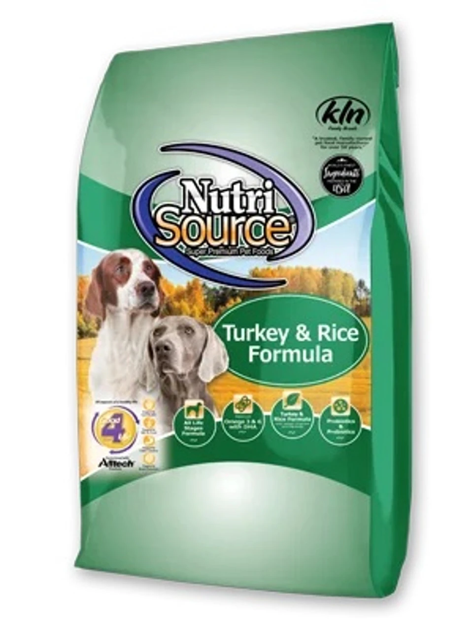 - As a member of our grain inclusive series of dog foods, NutriSource Turkey & Rice Recipe Dog Food is formulated to meet AAFCO guidelines for all life stages.
