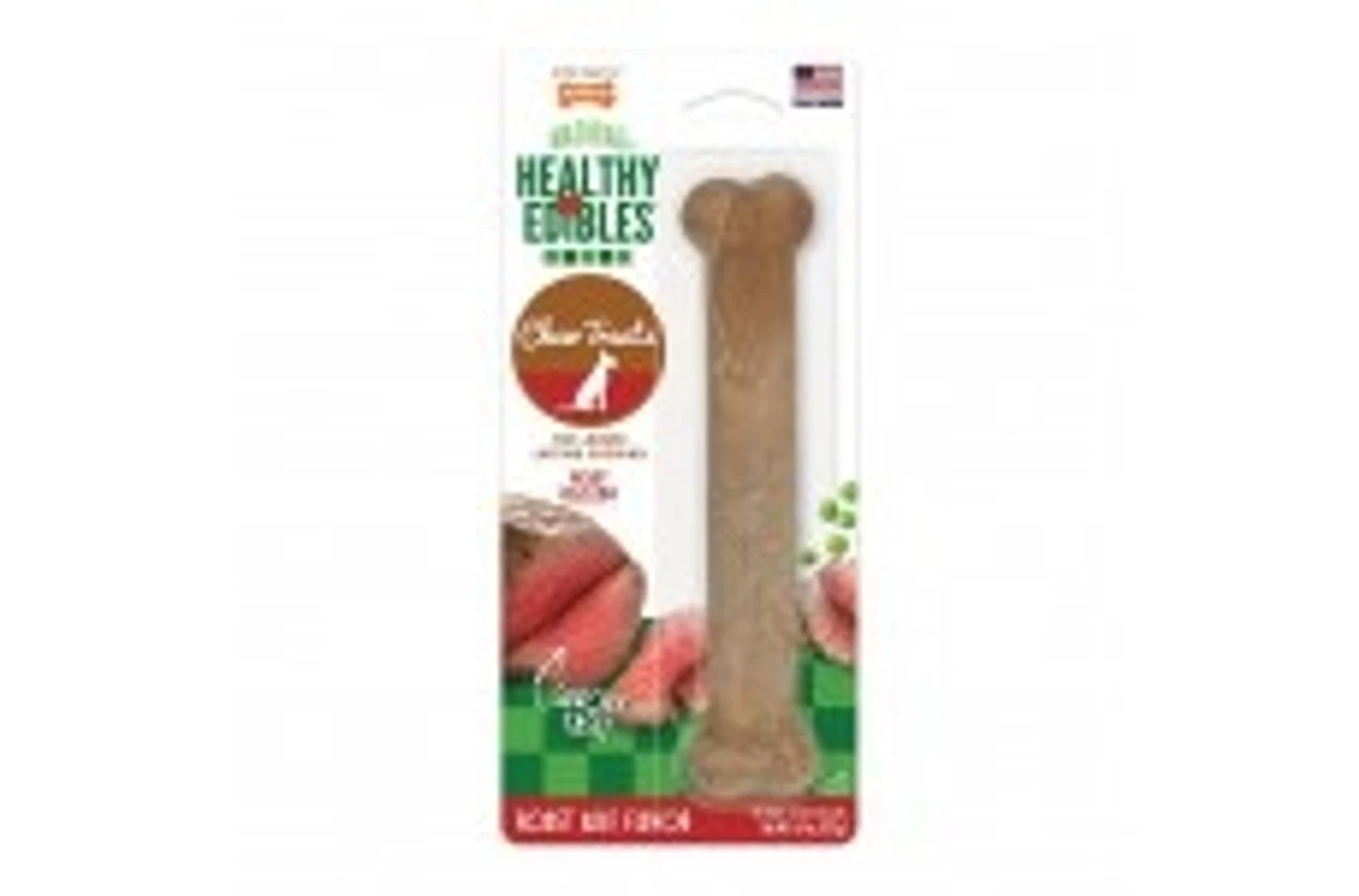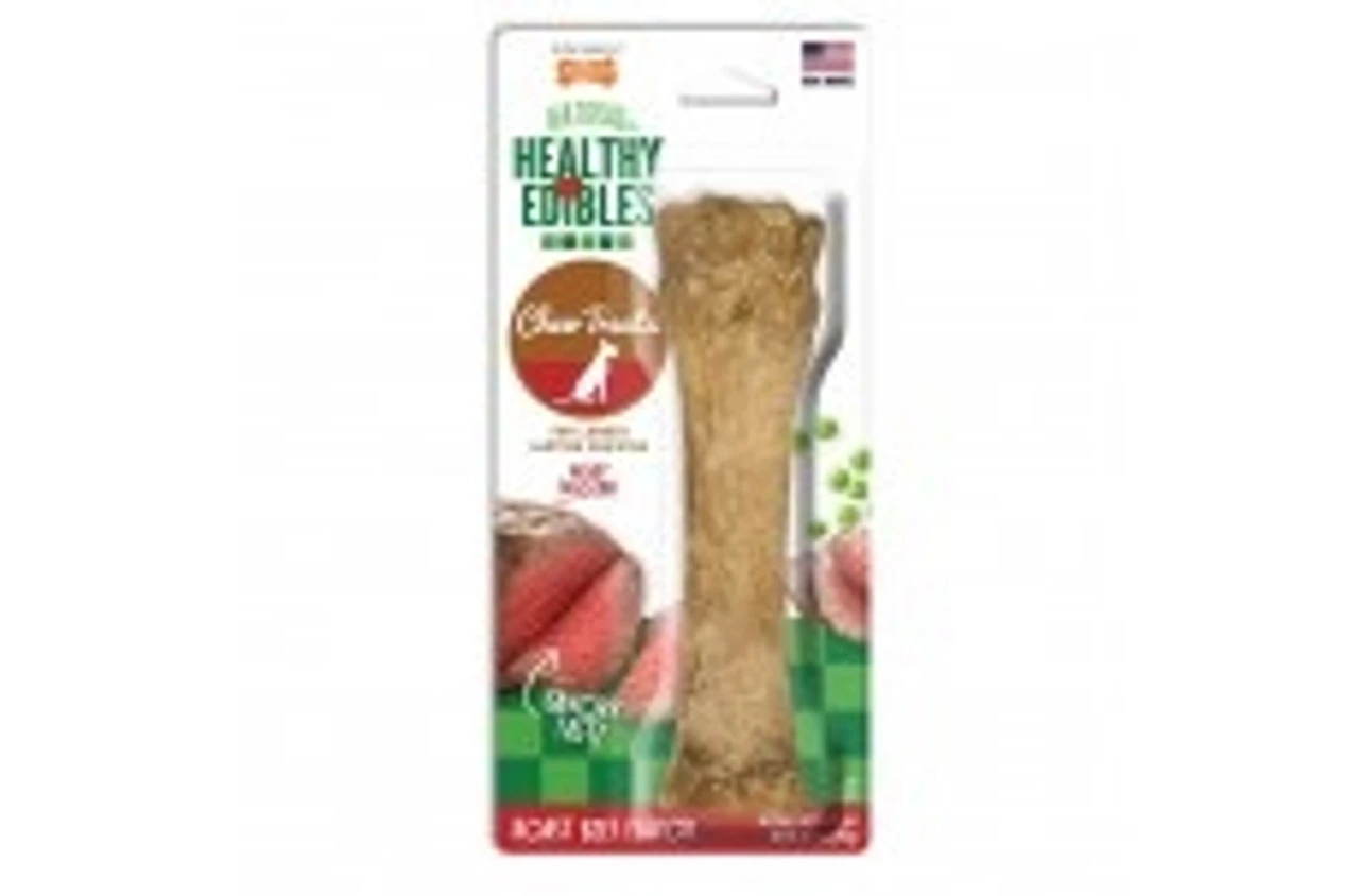 Healthy Edibles Roast Beef Bone with Vitamins. A tasty and completely edible chew that is easily digestible providing a safe and enjoyable alternative to traditional rawhide. NO plastic and NO added sugar. Delicious roast beef flavor bone with added vitamins! Made in the USA!