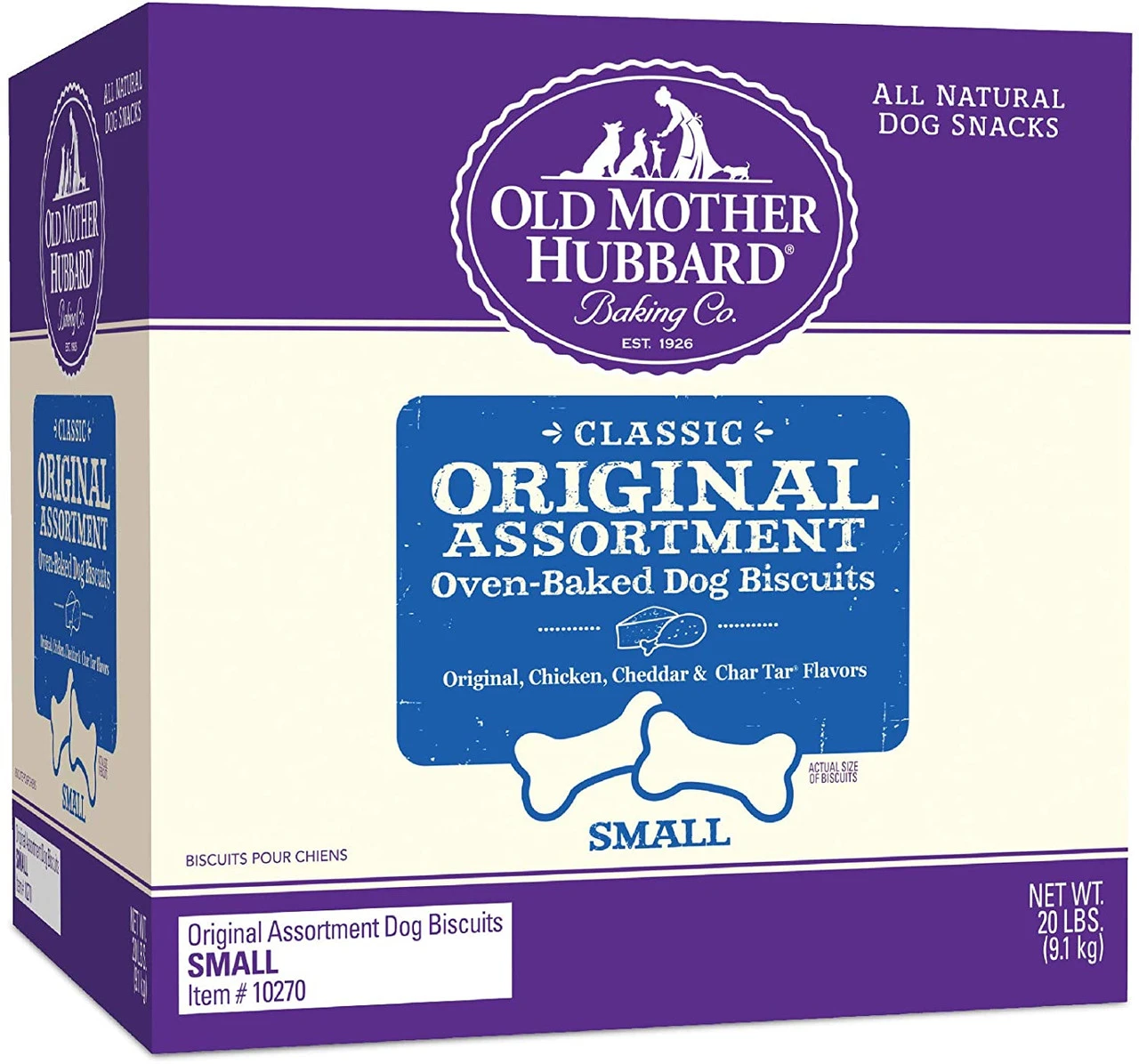 Old Mother Hubbard Crunchy Classic Natural Dog Treats are wholesome, all natural dog bone shaped dog biscuits oven-baked to preserve the natural flavors in all the varieties dogs love to catch, chew and eat. These Original Mix (previously named Original Assortment) natural dog biscuits feature all natural ingredients, four delicious flavors, including Original, Chicken, Cheddar & Char Tar flavors, as well as a fun dog bone shape and natural crunch your dog will really enjoy. Dog biscuits, treats and snacks are a great addition to a healthy diet. Snack time is a mutually rewarding show of love and positive reinforcement with your dog. You can feel good about training and rewarding your dog with Old Mother Hubbard natural dog treats.