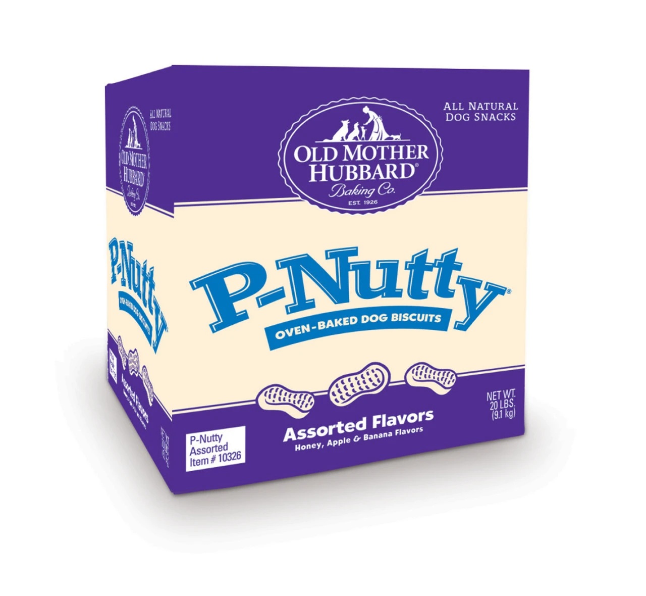 -P-Nutty dog biscuits feature the delicious taste of Honey, Apples and Banana