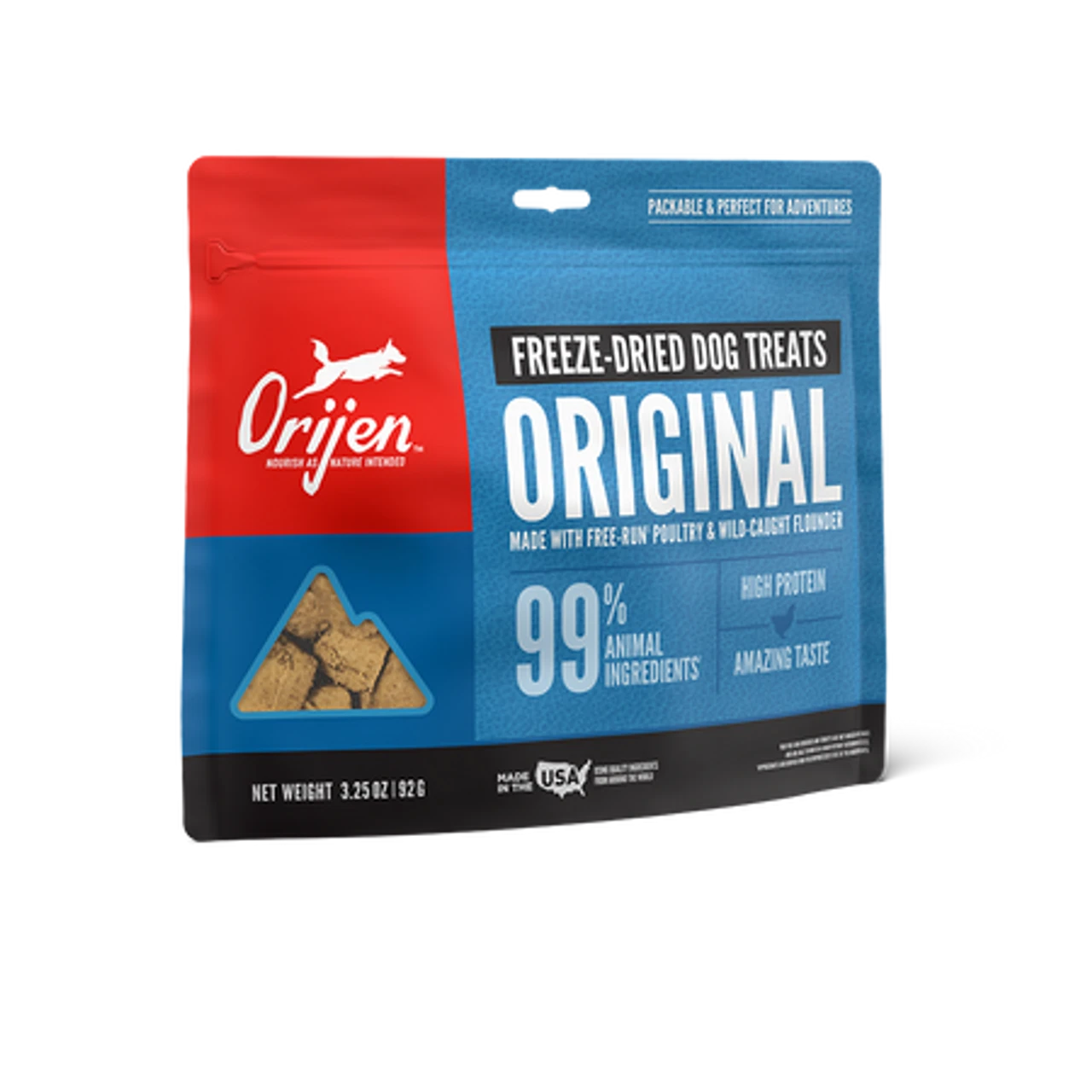 Gently freeze-dried in our own kitchen without synthetic preservatives, to lock in natural, delicious goodness, ORIJEN Original treats are a pure and tasty reward with a flavor that dogs crave.