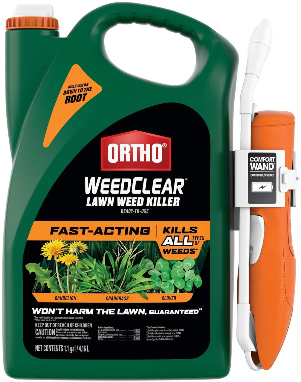 Ortho WeedClear Lawn Weed Killer Ready to Use – with Comfort Wand, Weed Killer for Lawns, Crabgrass Killer, Also Kills Chickweed, Dandelion, Clover & More, Fast Acting Weed Killer Spray, 1.1 gal.