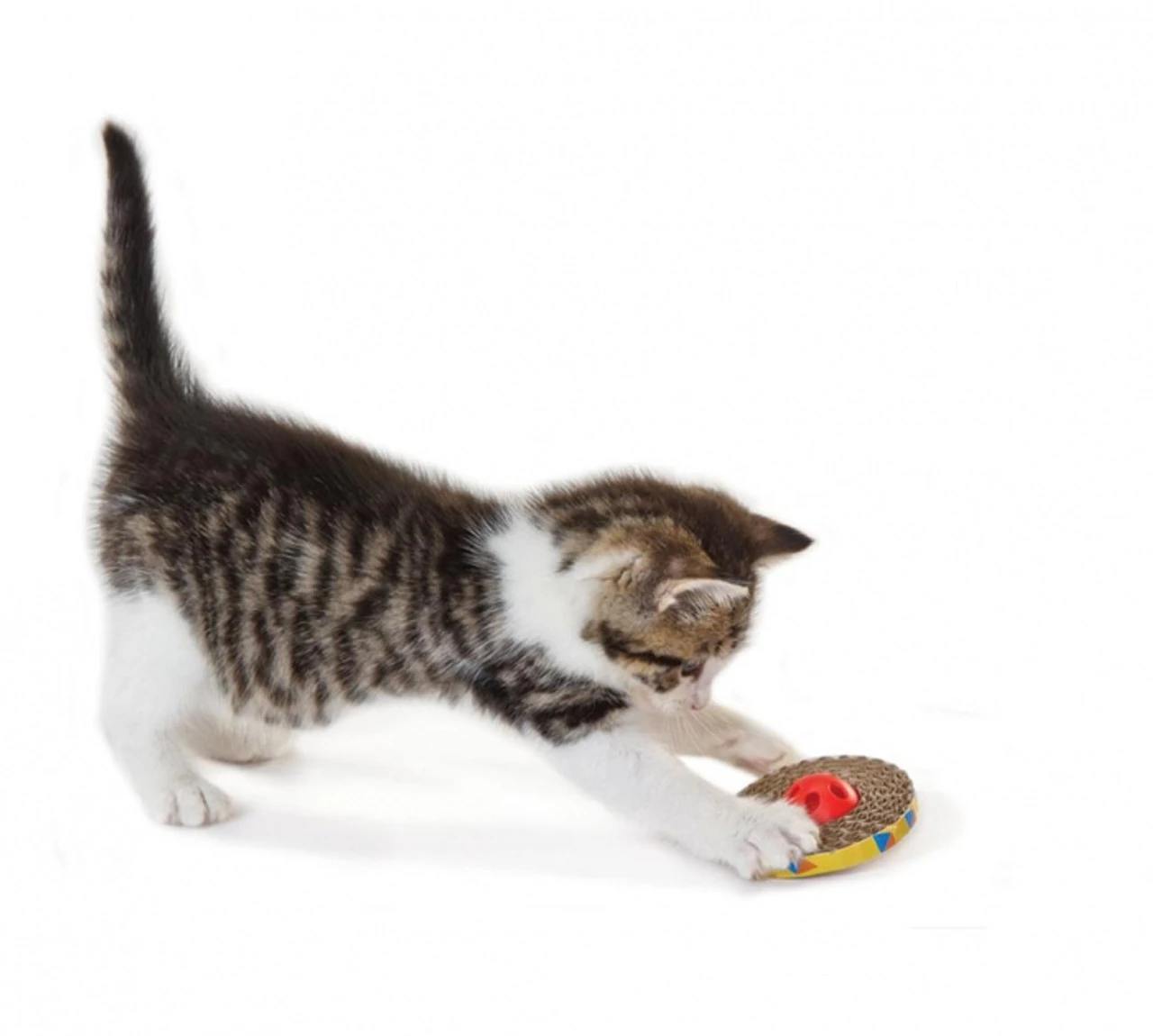 - 2-IN-1 SCRATCH & PLAY:The Spin & Scratch cat toy by Petstages satisfies your kitty’s natural urges to scratch in a playful and exciting toy that also jingles!
