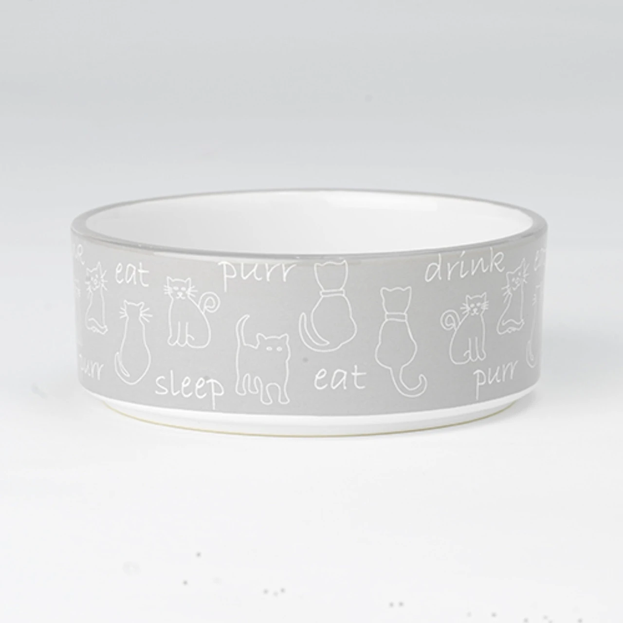 Playful Pet Eat, Drink, Purr, Gray/White, 2 cups