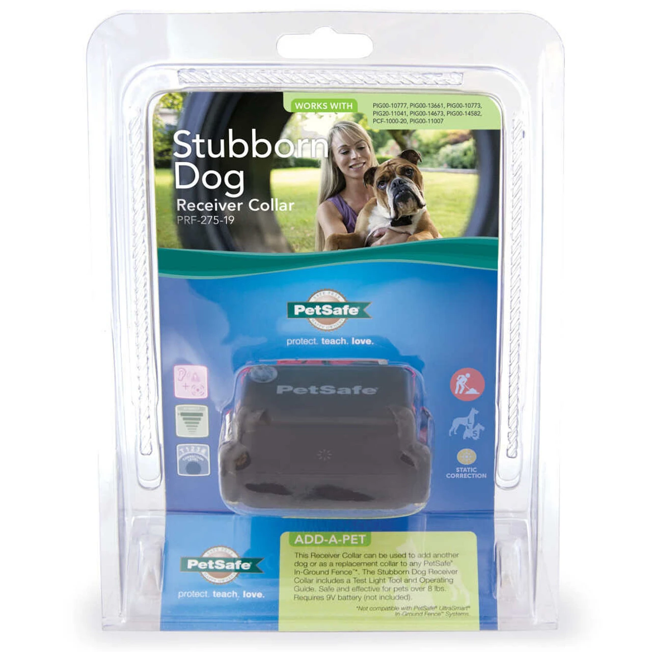 Use this battery-operated receiver collar as a replacement collar or purchase more collars for every persistent pet in your family. The collar is compatible with the Stubborn Dog In-Ground Fence™, Basic In-Ground Fence™, Rechargeable In-Ground Fence™, In-Ground Fence™, Elite Little Dog In-Ground Fence™ and In-Ground Cat Fence™. Your pet deserves safe and fun outdoor playtime, always. Trust PetSafe® to keep your pet healthy, safe and happy.