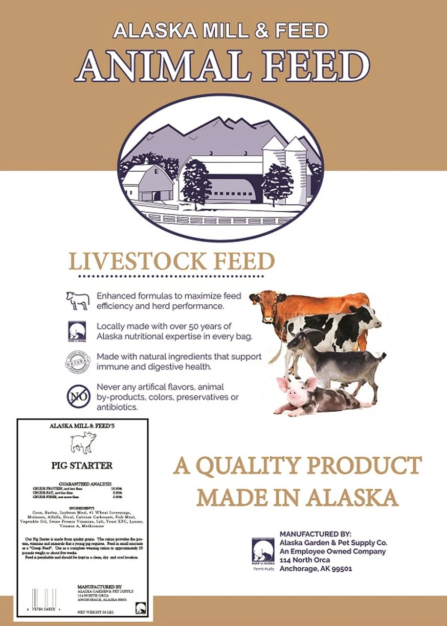 • Alaska made 18% Pig Starter ration that provides the protein, vitamins and minerals that a young pig requires