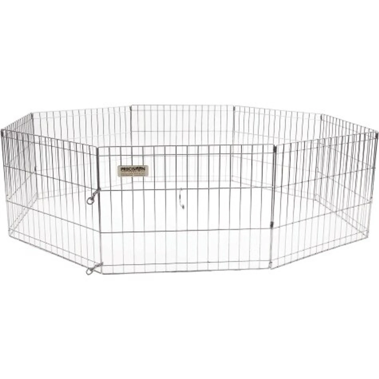 Keep your pet out of mischief with a Precision Pet® Choice Exercise Pen. Exercise pens are also a good playground for pets indoors and outdoors. Available in a variety of sizes for dogs of all breeds, each Choice Pen comes with eight, 2-foot wide panels that can be set up as a 16-foot “fence” or exercise pen. Made of durable, solid steel construction with a long-lasting silver zinc finish. The drop-pin design makes certain that there are no exposed screws, wires, or pins for added safety. A convenient, easily foldable design makes the Choice Pen perfect for camping, travel, or storage and can even be attached to your wire crate to give your pet added play space. Recessed fasteners protect your floor’s surface making it great for indoor use as well. Designed to be used with a variety of pets.