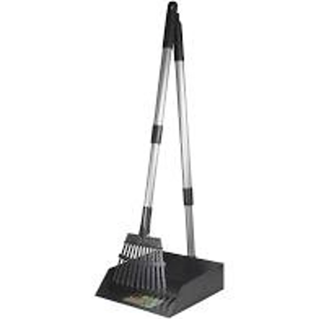 The Precision Pet® Little Stinker Heavy Duty Poop Scoop with Rake makes waste removal quick and easy with no back-breaking bending. The extra-long telescoping aluminum handle conveniently extends from 29 to 44 inches to match your height. Use the heavy-duty steel rake to scoop the offending mess into the steel pan. Features hanger hooks for easy storage and no assembly is required.