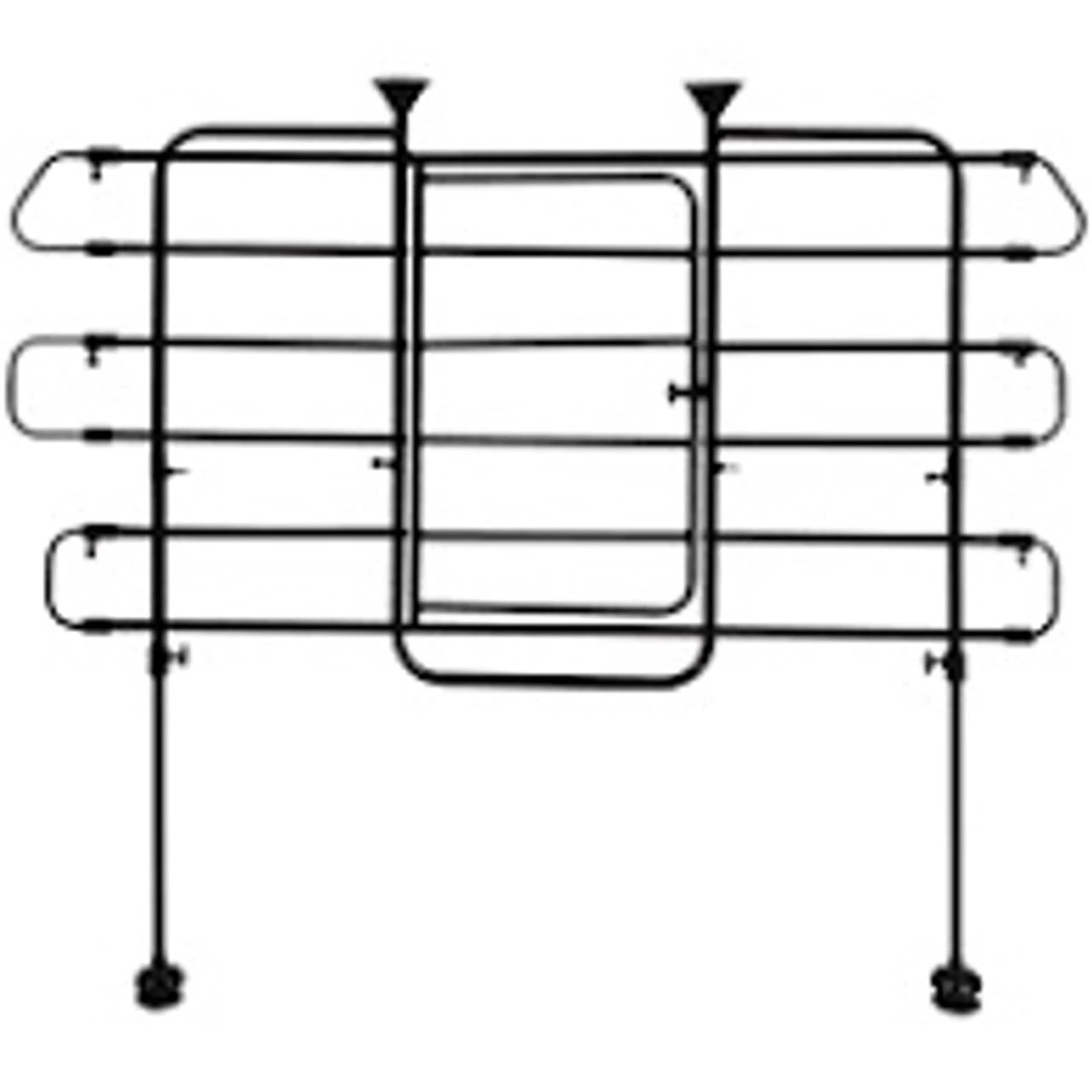 The Precision Pet Vehicle Barrier makes driving safer, easier, and complies with state animal safety laws. The Precision Pet Vehicle Barrier works by confining your pet to the cargo area, thus minimizing driver distractions. By confining pets to the cargo area, cars stay clean from dirt and hair. The rattle free design makes transportation hassle free, while the included door allows easy access to pets. The twist lock adjusters keep pets safely contained within the cargo area. Additionally, a third extension bar was built-in for increased coverage. The included two sets of legs customize the vehicle barrier’s fit to your car, while the rubber cups protect your vehicle’s headliner/roof. No tools required for quick and easy installation. Assembles and installs in minutes! Includes a one year warranty against manufacturer’s defects. Color: Black. Size: Universal size for cars, SUVs, and vans. 32-57(Height) x 38-65(Width).