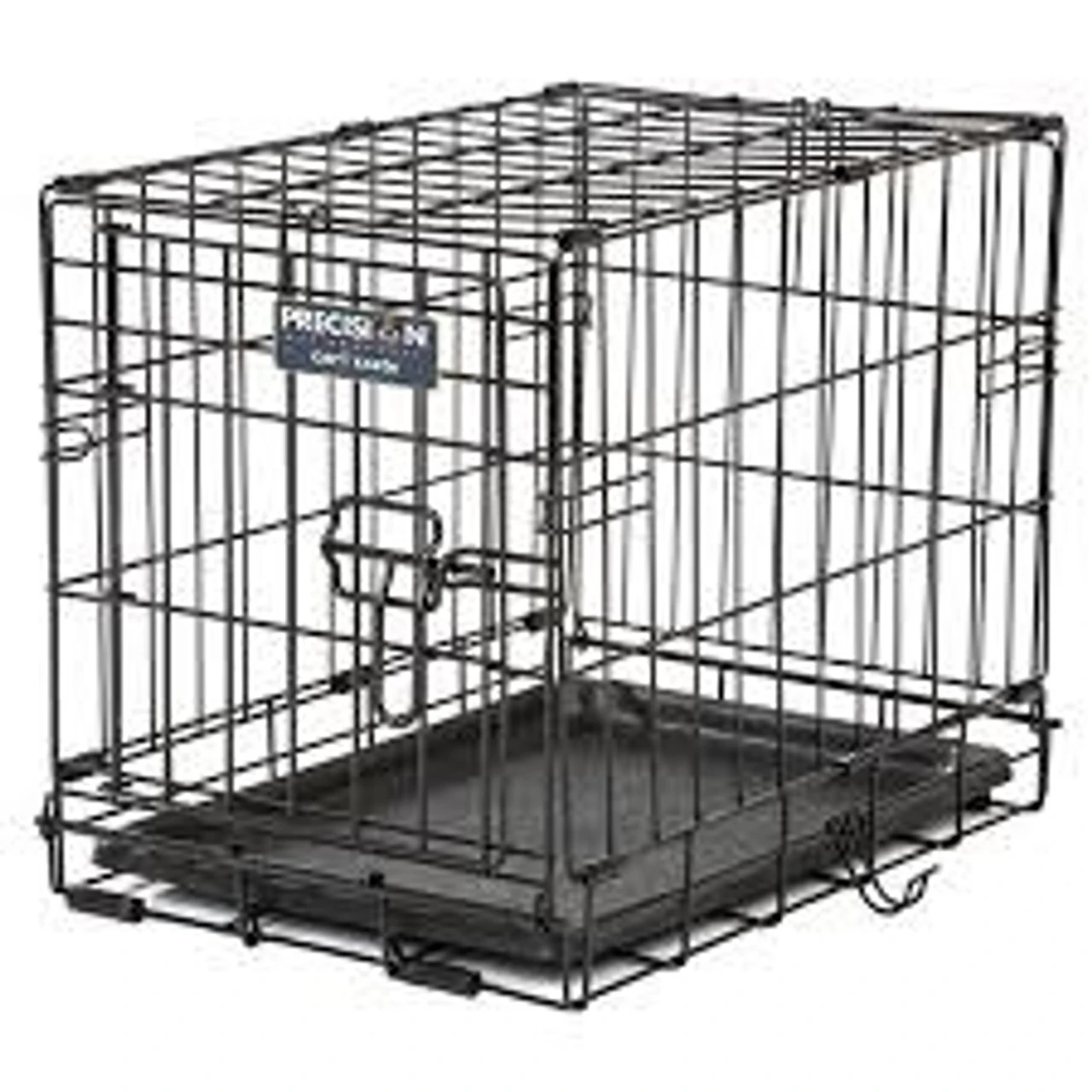 Keep your dog safe, secure, and happy in his very own Precision Pet® 3 Door Great Crate®. Perfect for house training your pet, this spacious crate provides plenty of room as your pup grows and features three doors for easy access, as well as a patented 5-Point Door Lock System that eliminates any gaps in the top, sides, and middle of the door increasing the strength and safety of the overall door system. Features a patented Quiet Link System that eliminates any crate rattling while being used. Durably designed with stronger, heavier gauge wire construction with a designer Hammertone finish increases the life and look of the crate. Purchase includes a replaceable polypropylene pan and a divider panel to adjust the size of the crate as your pet grows.
