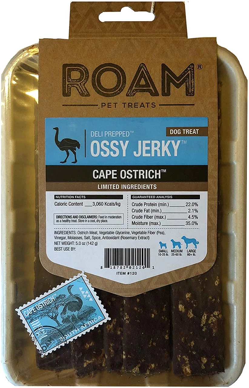 Roam Pet Treats Ossy Jerky Dog Treats, Ostrich, 5oz