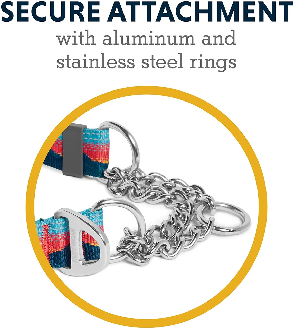 - Multi-use: Attach your leash to the stainless steel O-ring on the chain to engage the limited-cinch martingale function or to the aluminum V-ring to use as a regular collar for everyday walks and play