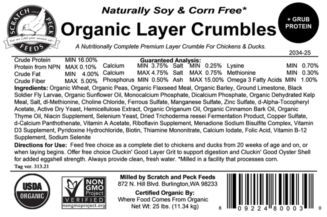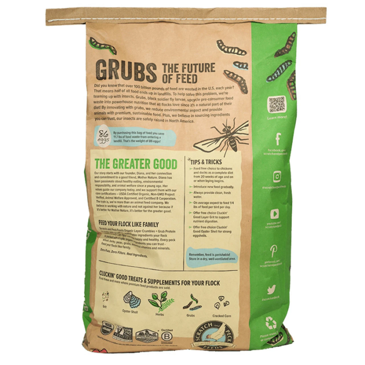 Every bag of Scratch and Peck Organic Layer is packed full of proteins, vitamins and minerals. All put together to promote healthy, happy flocks. Perfect nutrition for your layers to produce healthy, delicious eggs.