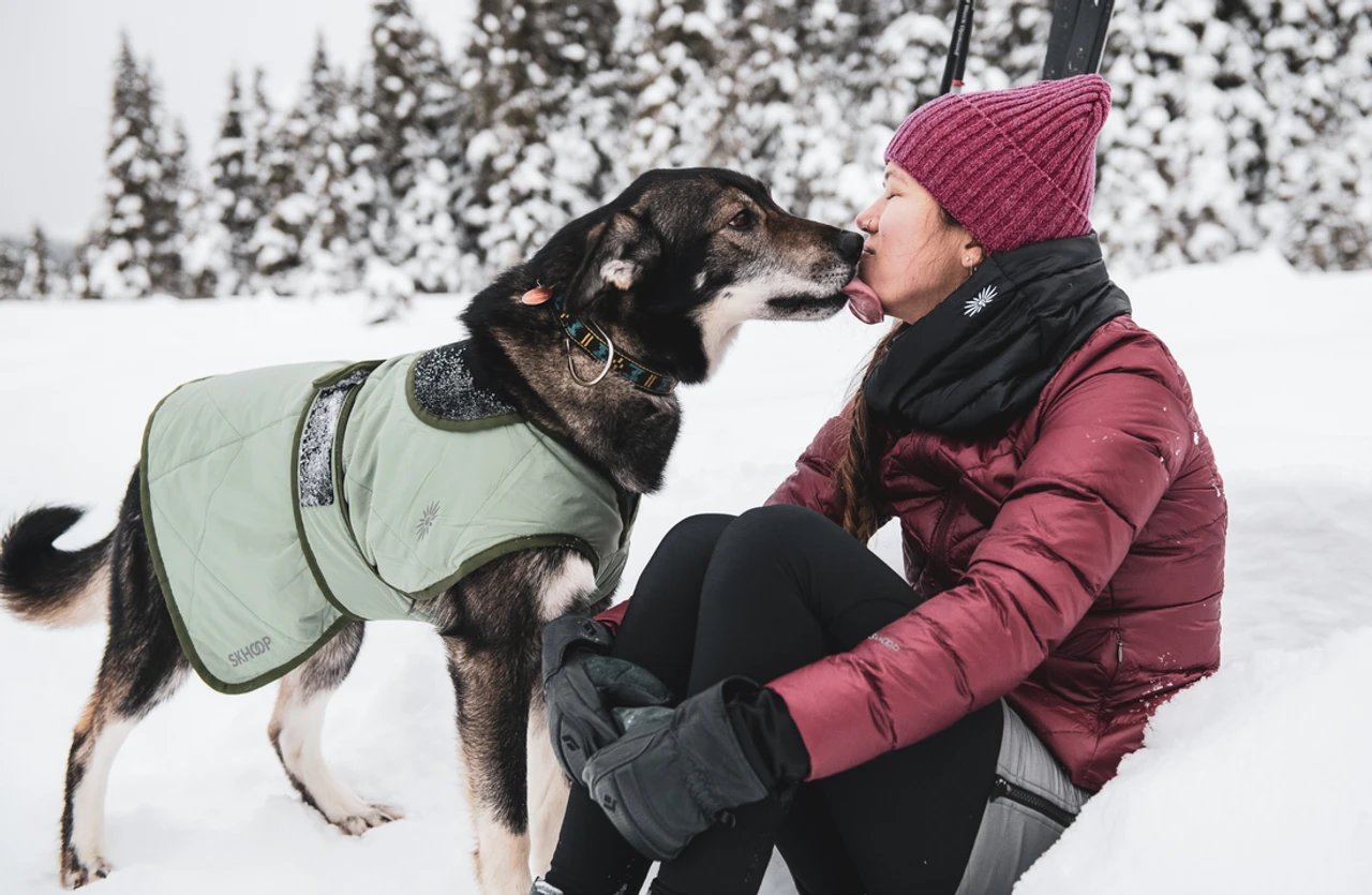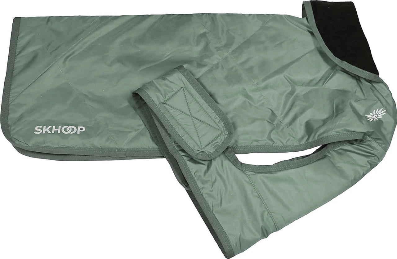 We are dog lovers here at SKHOOP and believe that our four-legged friends are also worthy of good clothes! Our new dog coat matches our own skirts, jackets and vests in both quality and colors. This coat has a collar that protects the dog’s neck from both cold and snow. The front covers the dog’s stomach and is easily attached around the dog’s middle with Velcro. The jacket is lined with a warm comfortable fleece. Reflective details on both sides of the jacket give your dog the best cold weather look!