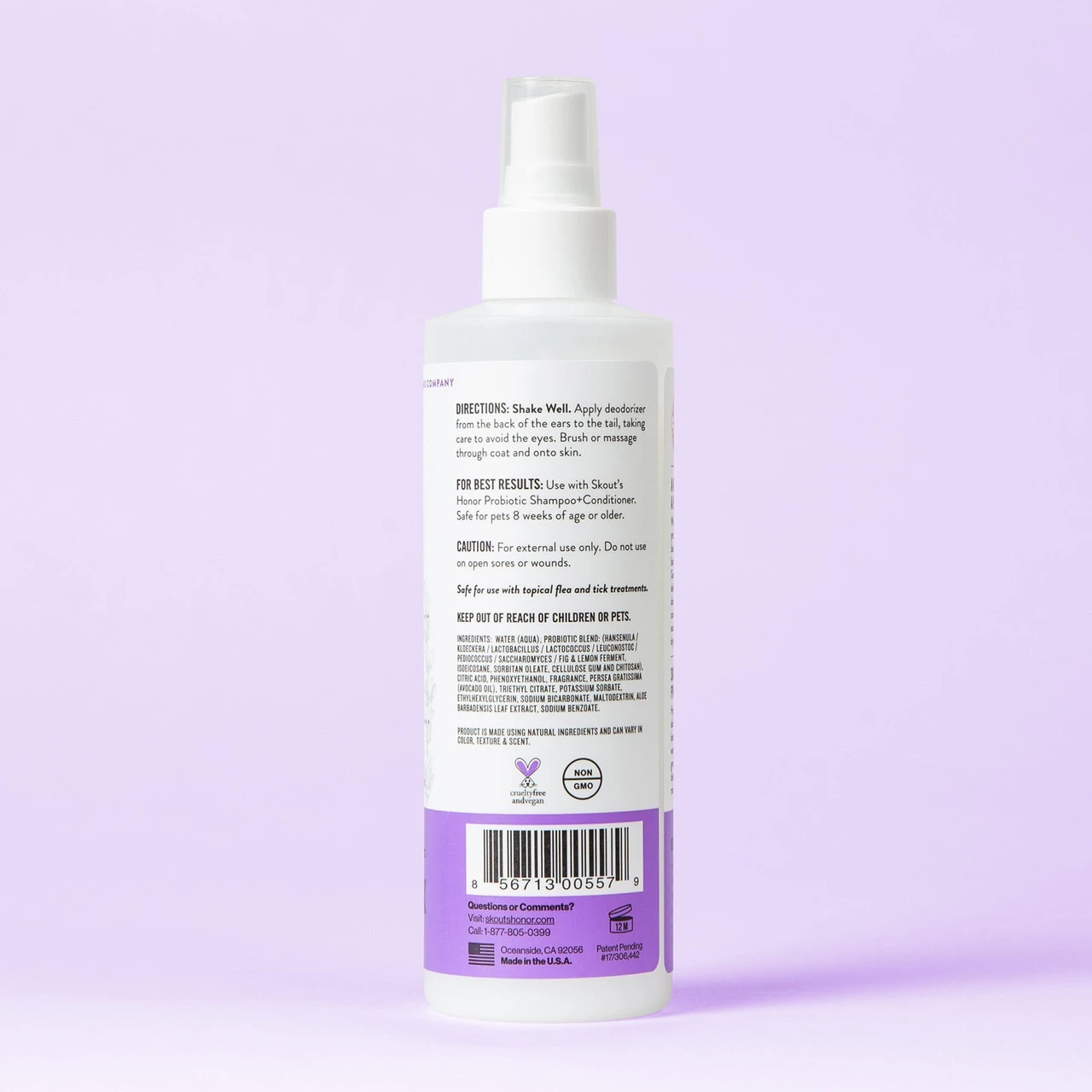 Our cat and dog deodorizing spray hydrates and deodorizes the skin and coat for a fresher, better-smelling pet in between washes. It contains avocado oil and topical probiotics that help support a healthy microbiome to defend against common skin problems such as itching, odor, dryness, dandruff, hot spots, yeast and excessive shedding.