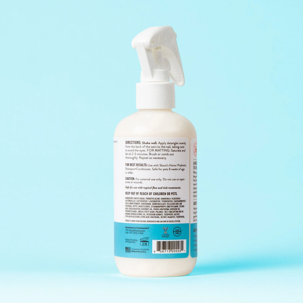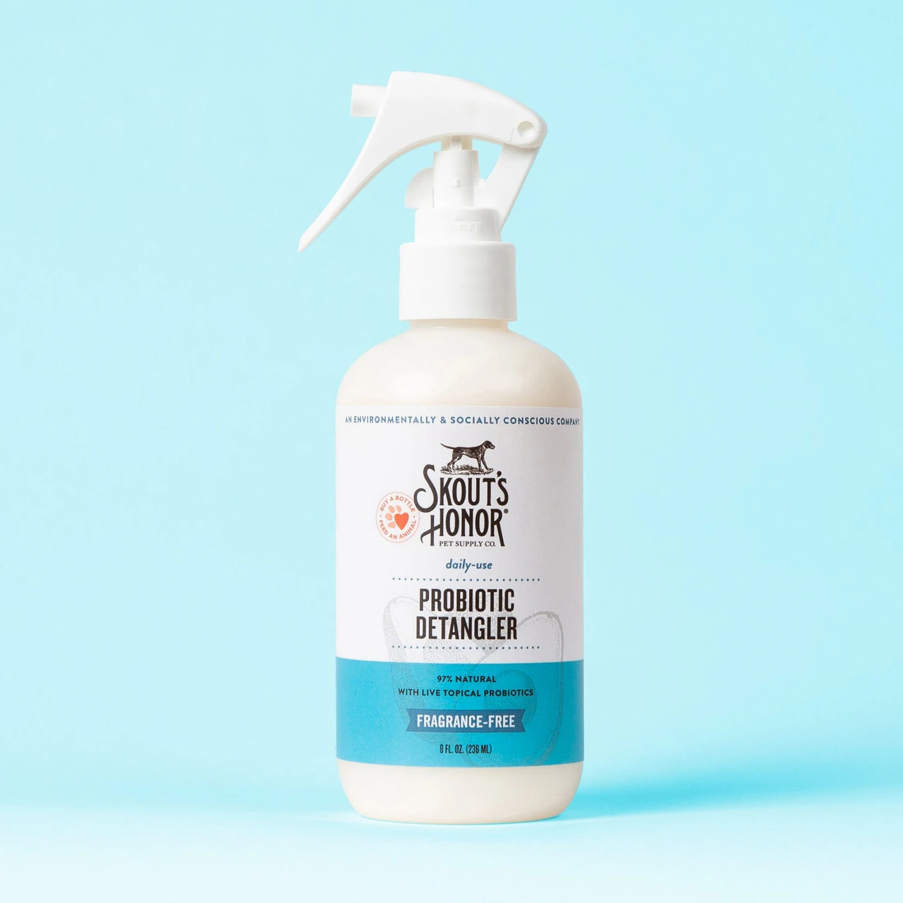 Our dog and cat hair detangler hydrates the skin and softens the coat for a more brushable, tangle-free pet. It contains avocado oil and topical probiotics that help support a healthy microbiome to defend against common skin problems such as itching, odor, dryness, dandruff, hot spots, yeast and excessive shedding.