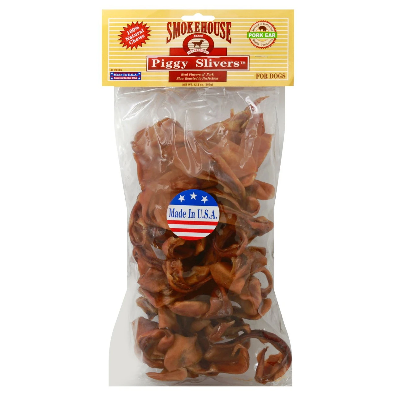 Smokehouse Pig Ears are one of our classic chews made in the USA. We slow-roast high quality pig ears to lock in the flavor. This is sure to become one of your dog’s favorites!