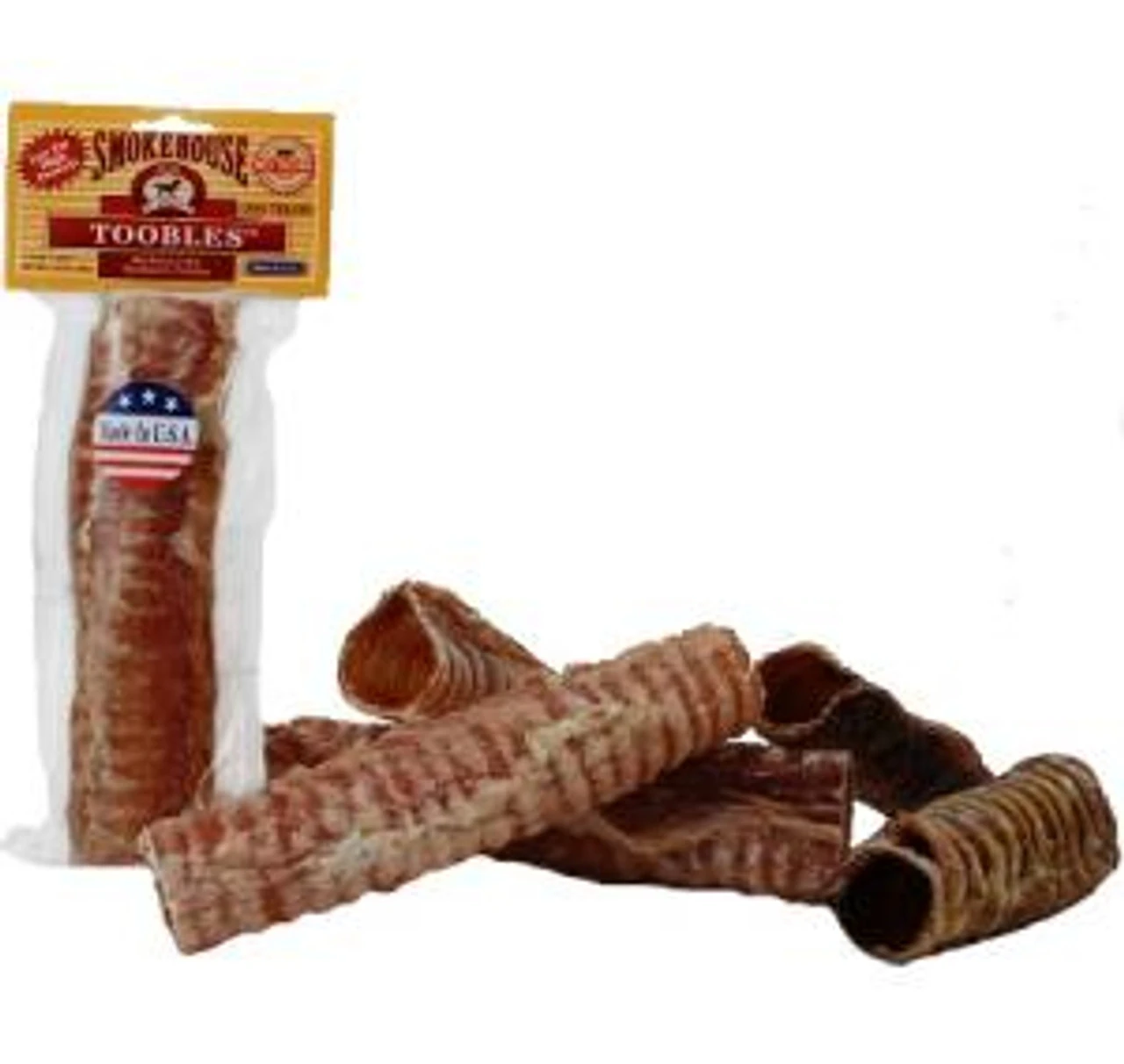 Smokehouse Toobles® are a crunchy treat full of flavor. Your dog is sure to love the unique texture and beefy taste. Toobles® are made from beef tracheas which are a natural source of glucosamine and chondroitin. 100% natural and made right here in the U.S.A.
