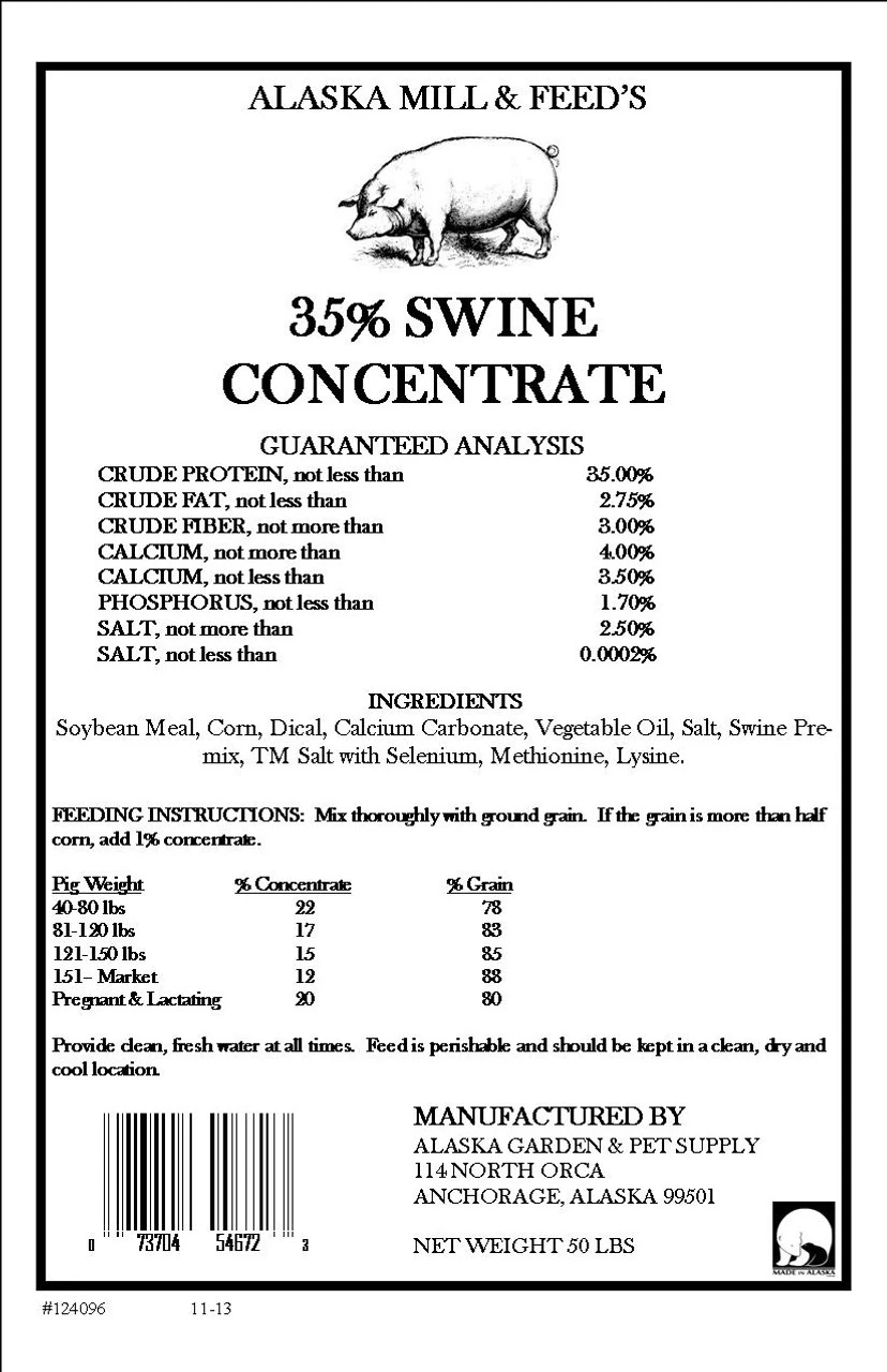 Soybean Meal, Corn, Dical, Calcium Carbonate, Vegetable Oil, Salt, Swine Premix, TM Salt with Selenium, Methionine, Lysine.