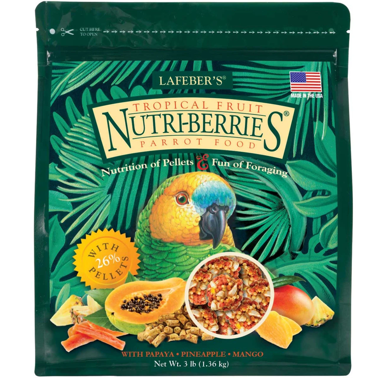Parrots like Amazons, African greys, and Pionus are always on the one-eyed lookout for something extra special at mealtime. These birds crave foods full of taste and texture, which is exactly what they’ll find in Tropical Fruit Nutri-Berries with its whole seeds and grains mixed with real pieces of pineapple, papaya, mango, and 26% pellets all rolled into a berry shape a parrot can hold and delight in each bite.