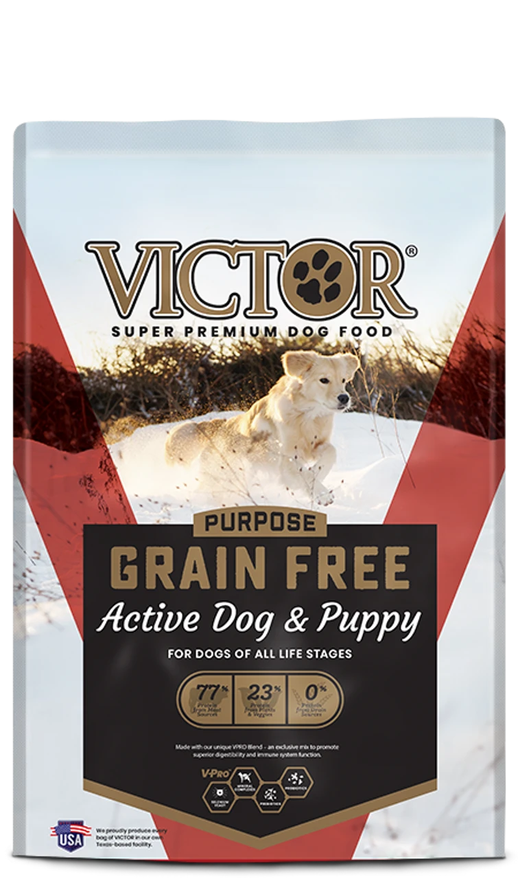 VICTOR Grain Free Active Dog & Puppy for Dogs is formulated to meet the nutritional levels established by the AAFCO Dog Food Nutrient Profiles for All Life Stages, including growth of large size dogs (70 lb. or more as an adult).