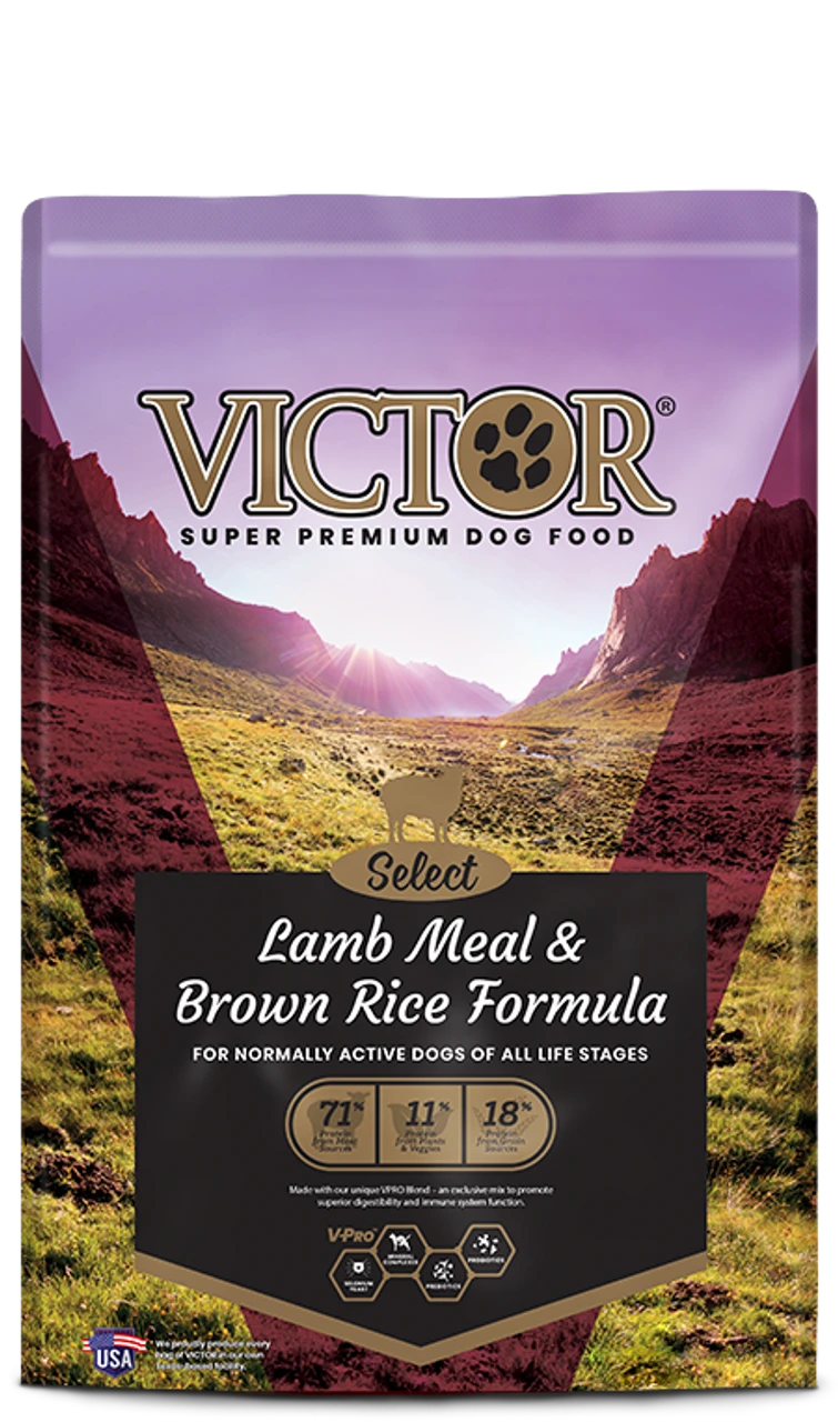 With premium-quality lamb meal as the primary protein source, VICTOR Lamb Meal & Brown Rice Formula is formulated to nutritionally support dogs with normal activity levels. It is easy to alternate SELECT formulas to offer your dog multiple flavors throughout the year. This formula is appropriate for large and small dogs at all life stages.