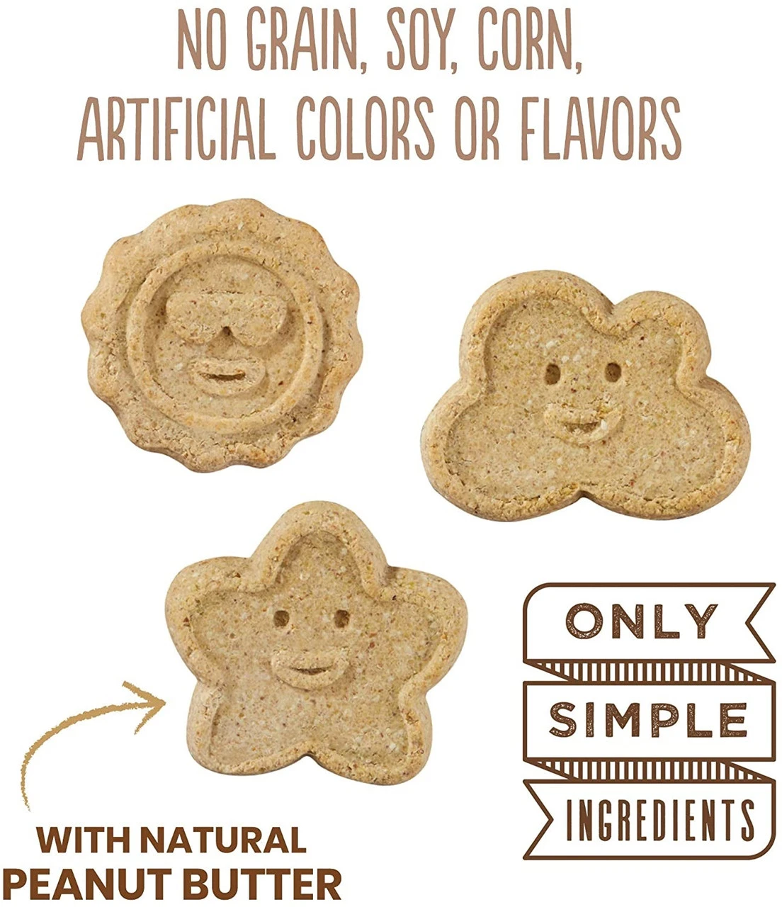 Pea flour, tapioca starch, chickpea flour, flaxseed, peanut butter, apples, canola oil, granulated peanuts, mixed tocopherols (preservative)