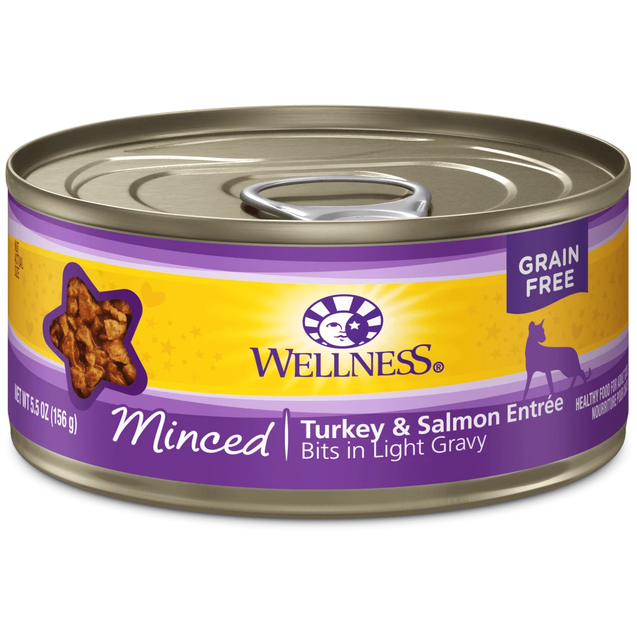 Wellness® Minced Turkey & Salmon Entrée Cat Food is formulated to meet the nutritional levels established by the AAFCO Cat Food Nutrient Profiles for maintenance.