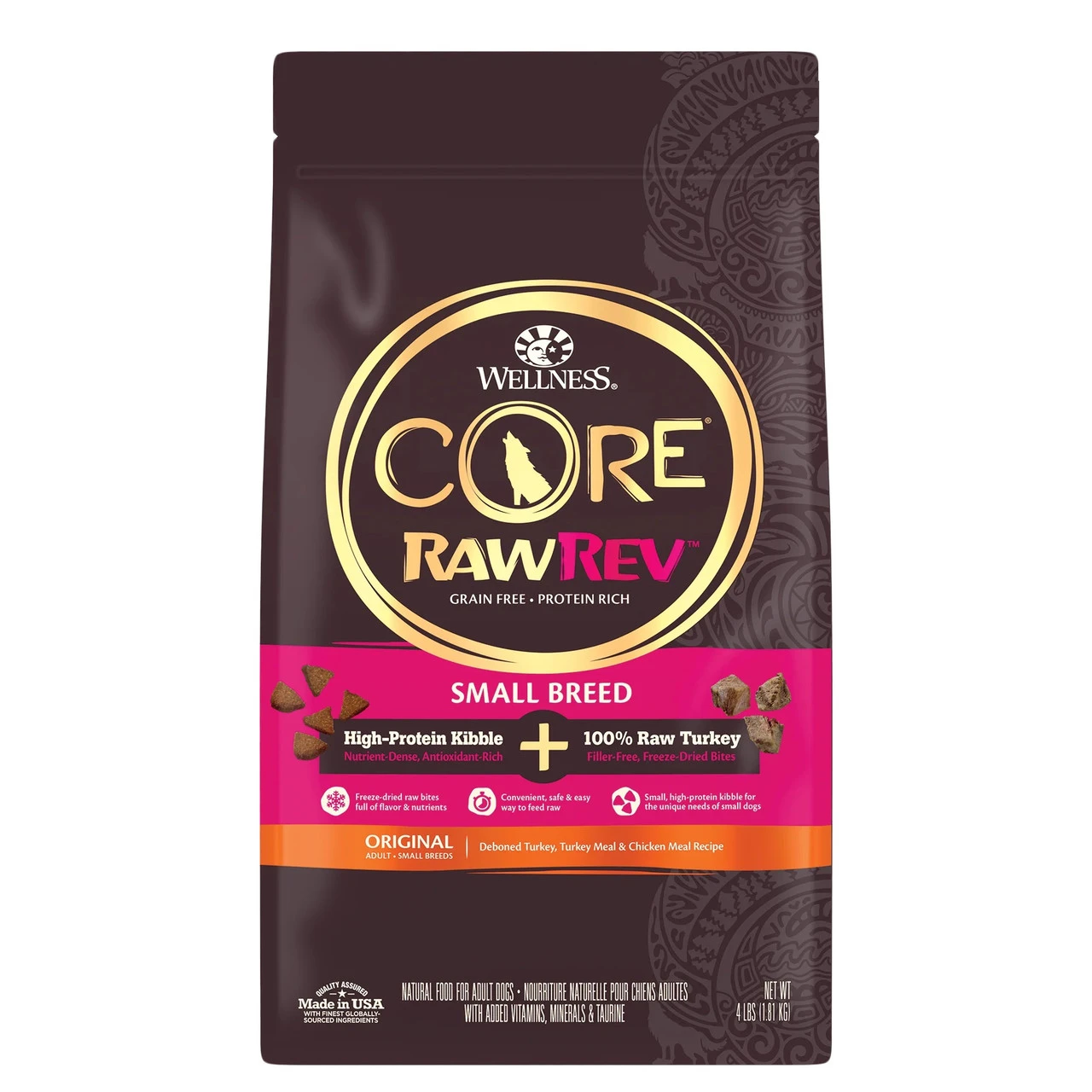 Wellness CORE RawRev Small Breed Original Deboned Turkey, Turkey Meal & Chicken Meal Recipe is formulated to meet the nutritional levels established by the AAFCO Dog Food Nutrient Profiles for maintenance.