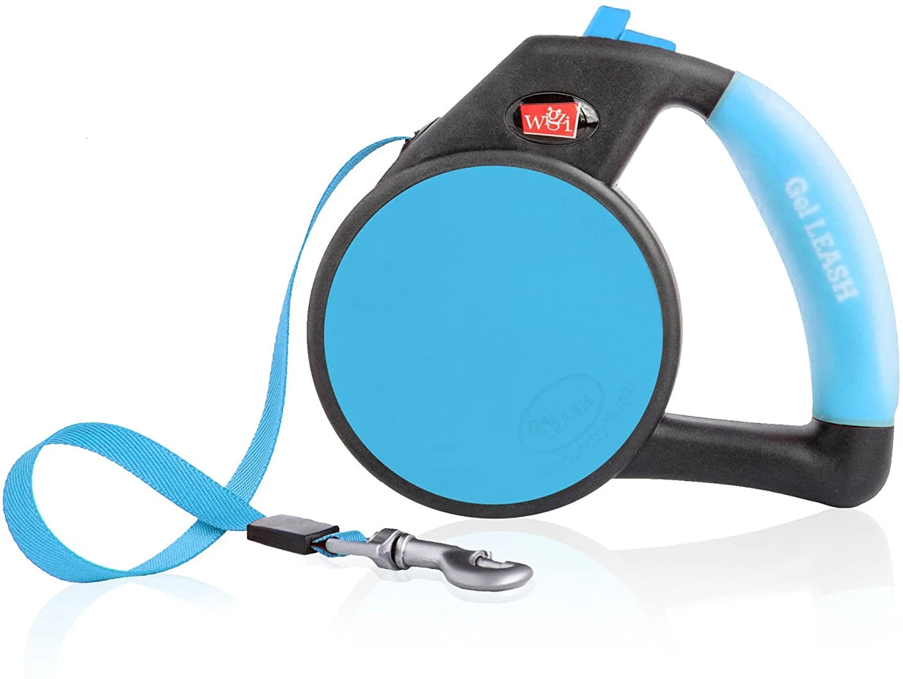 WIGZI Durable Liquid Filled Gel Handle Comfort Grip Retractable Dog Leash, Blue