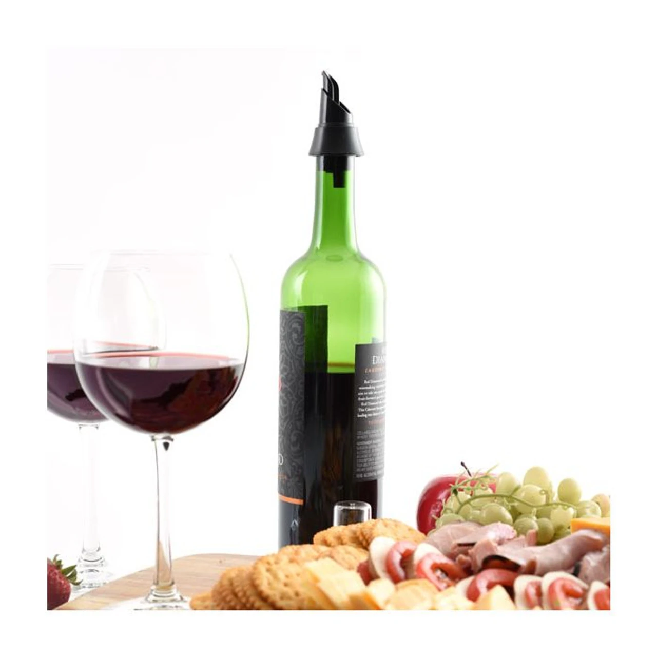 Wine pourer and stopper with vented spout to allow wine to breathe.