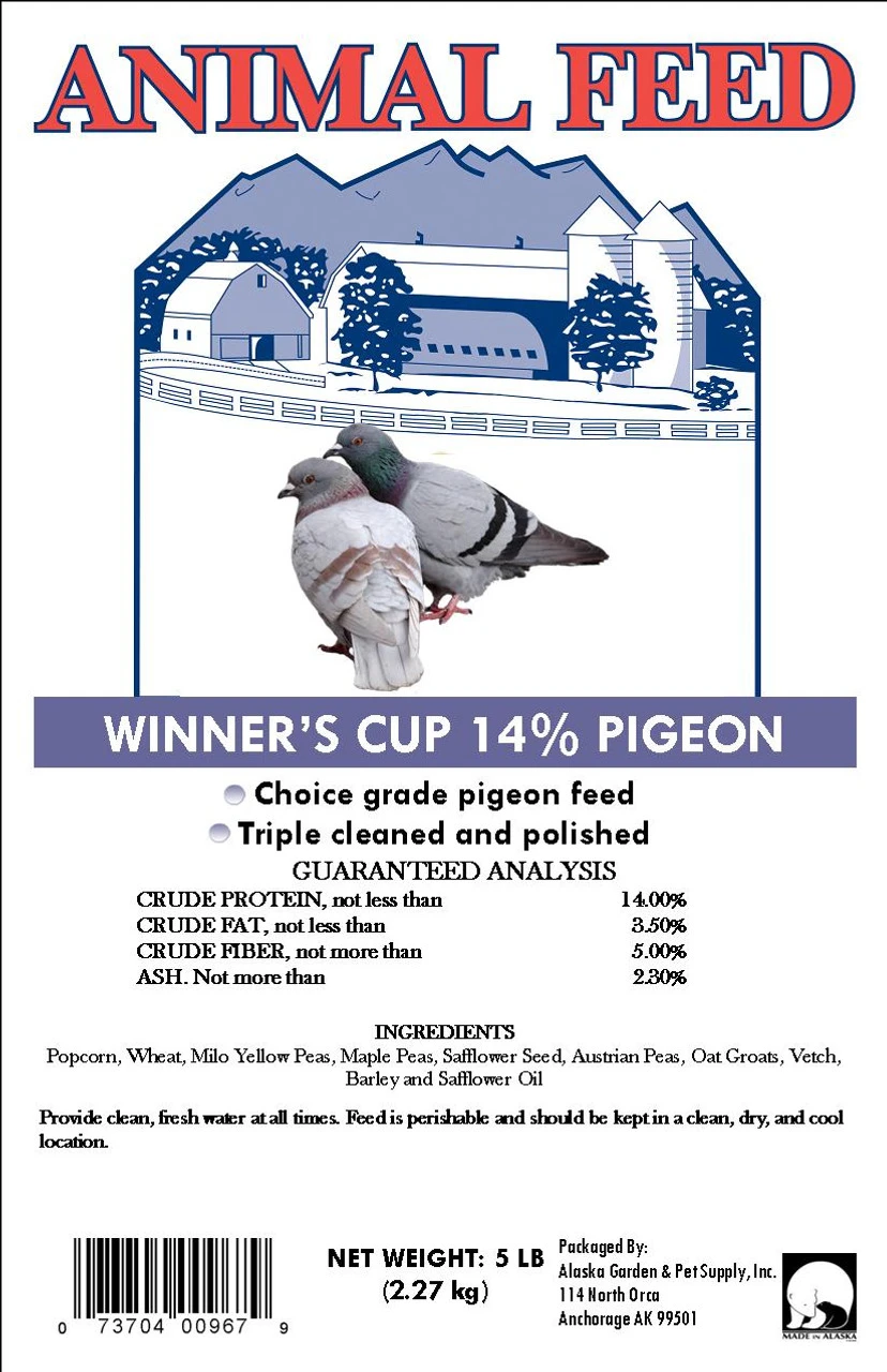 • Alaska made triple cleaned and polished choice grade 14% Pigeon Feed