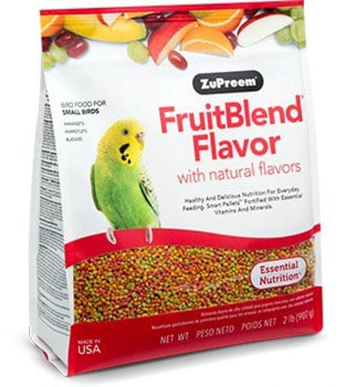 FruitBlend® Flavor with natural flavors provides healthy and delicious nutrition for everyday feeding for Parakeets, Budgies, Parrotlets and other small birds that prefer this pellet size.