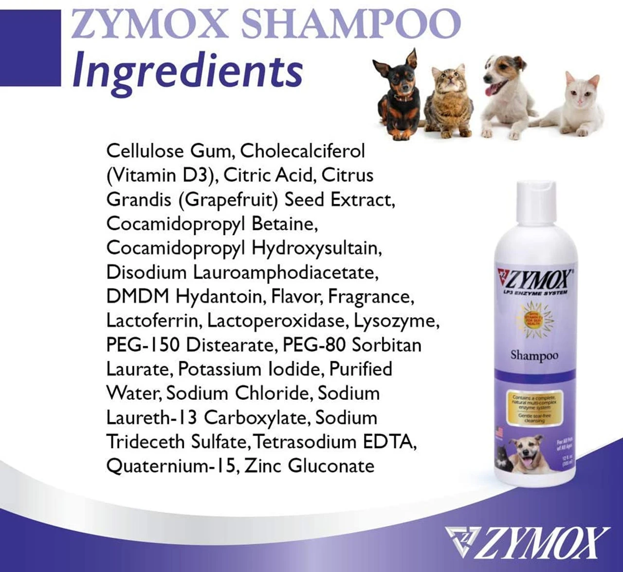 The enzymes in ZYMOX Topical Shampoo combine with biological material in the skin to gently soothe raw skin and provide natural antimicrobial protection.
