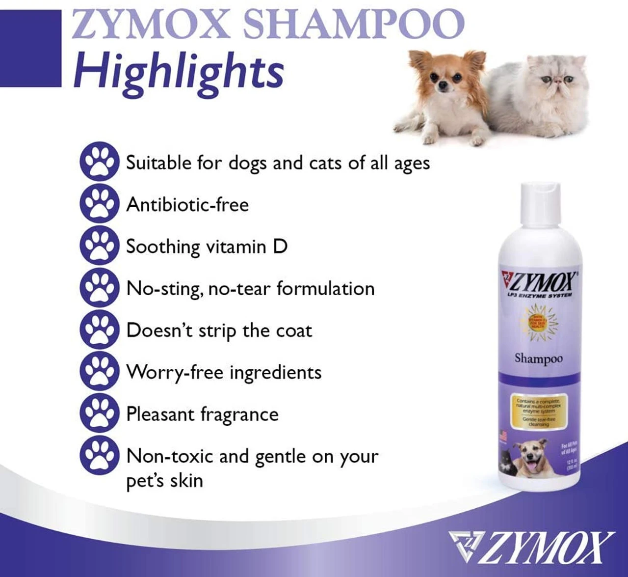 As pet parents, we understand that you want to do all you can to keep your pet happy and free from upset. That’s why we developed ZYMOX Shampoo, an anti-itch, antibacterial, antifungal and anti-yeast shampoo for dogs and cats.